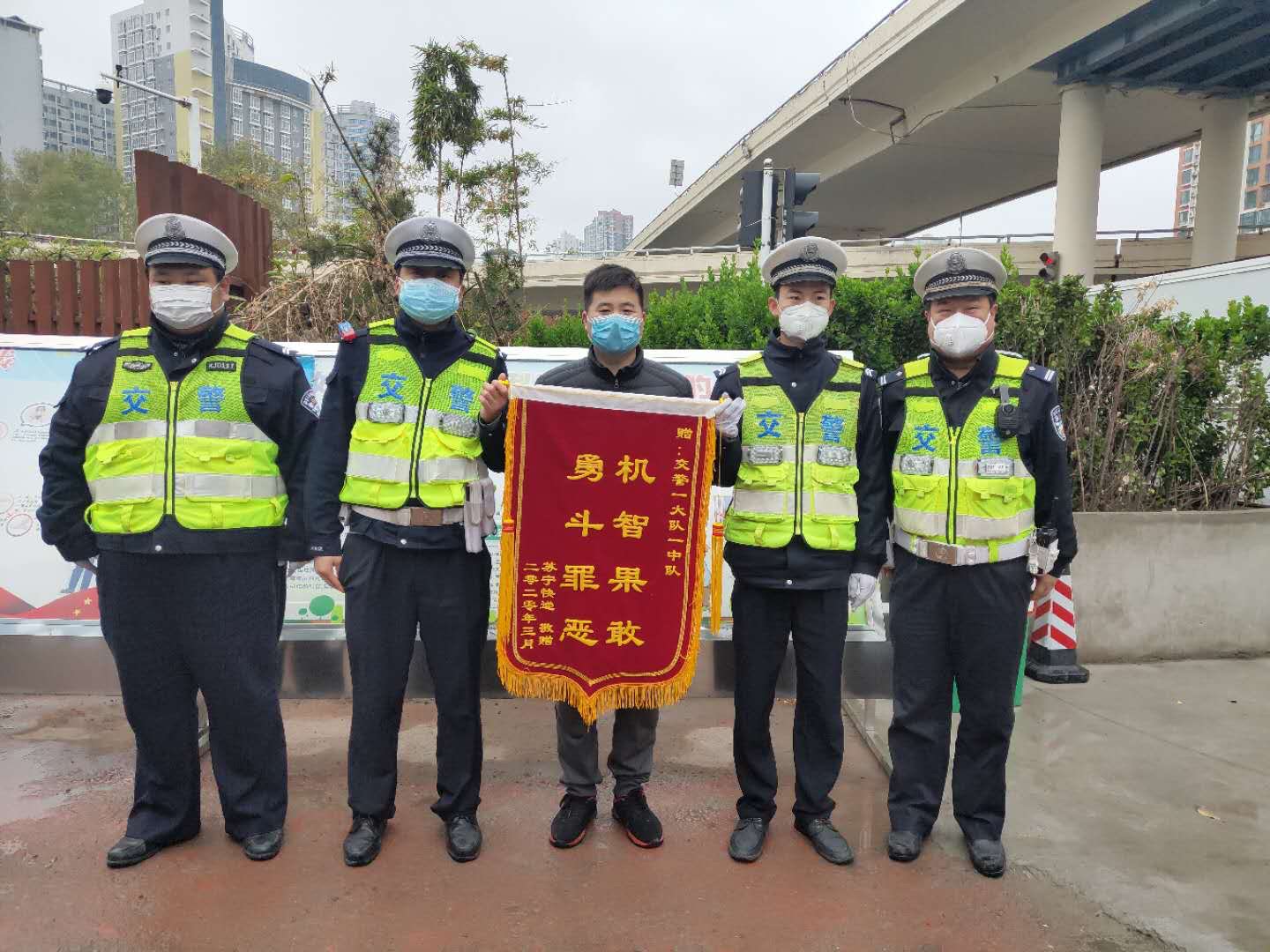 事后,为了向执勤交警表示感谢,失主李某特意送来锦旗,于是便出现了开头的一幕。