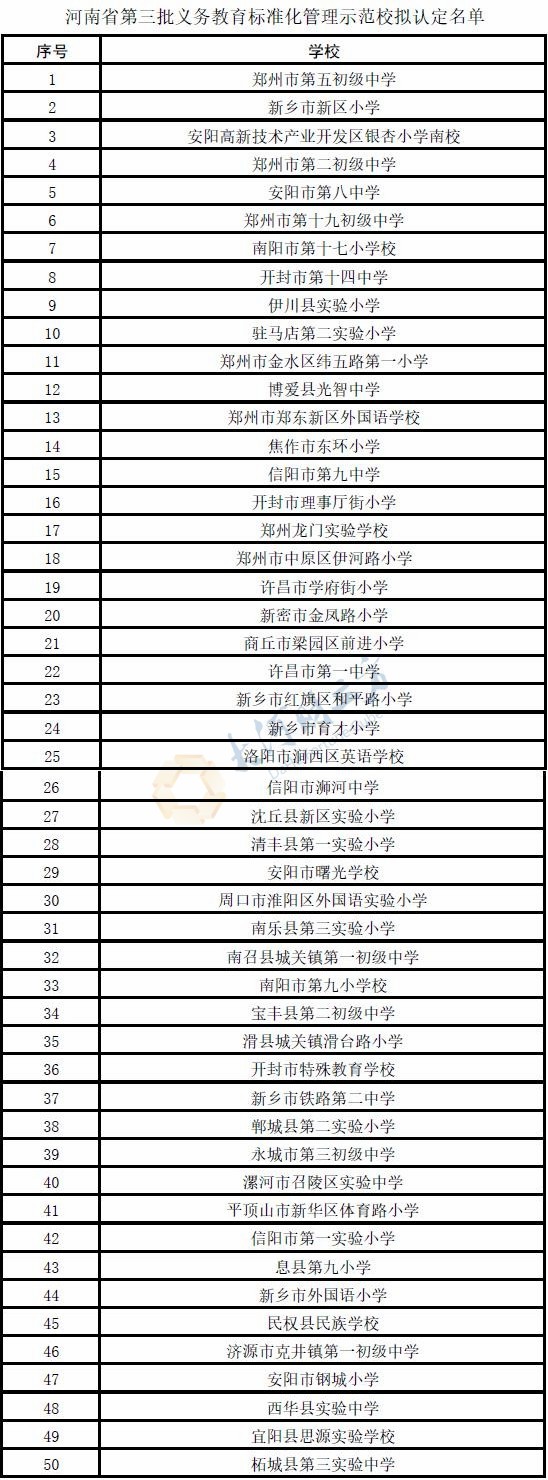 附:河南省第三批义务教育标准化管理特色校拟认定名单