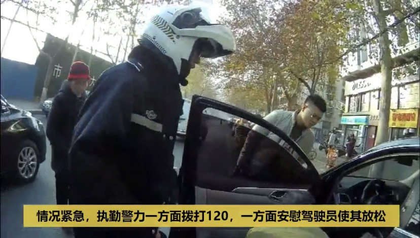 2019年12月29日下午15时许,郑州交警一大队三中队辅警王银均和李伟帆在巡逻经七路与红专路向西100米处时发现前方车牌号为豫AWZ303的黑色小轿车驾驶室门敞开着打着双闪应急灯停在非机动车道内,驾驶人下半身却在车外。见此情况,民警迅速驾驶摩托上前查看情况。