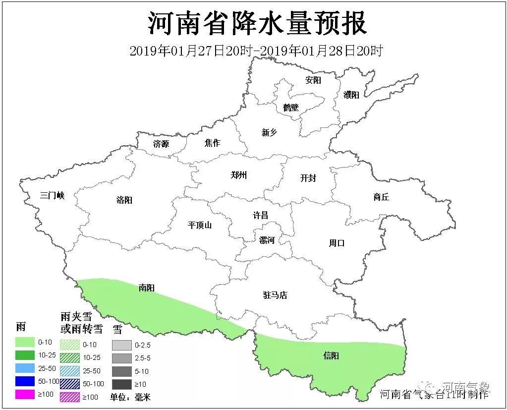 今天夜里到明天白天,南阳、信阳两地区有零星小雨;