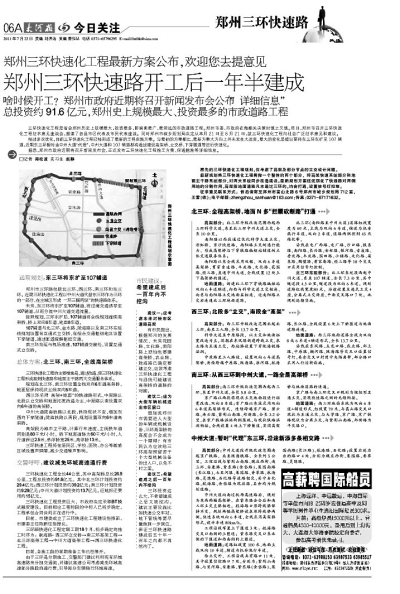 郑州三环快速路已通车一年多部分路段难竣工 至少还需半年