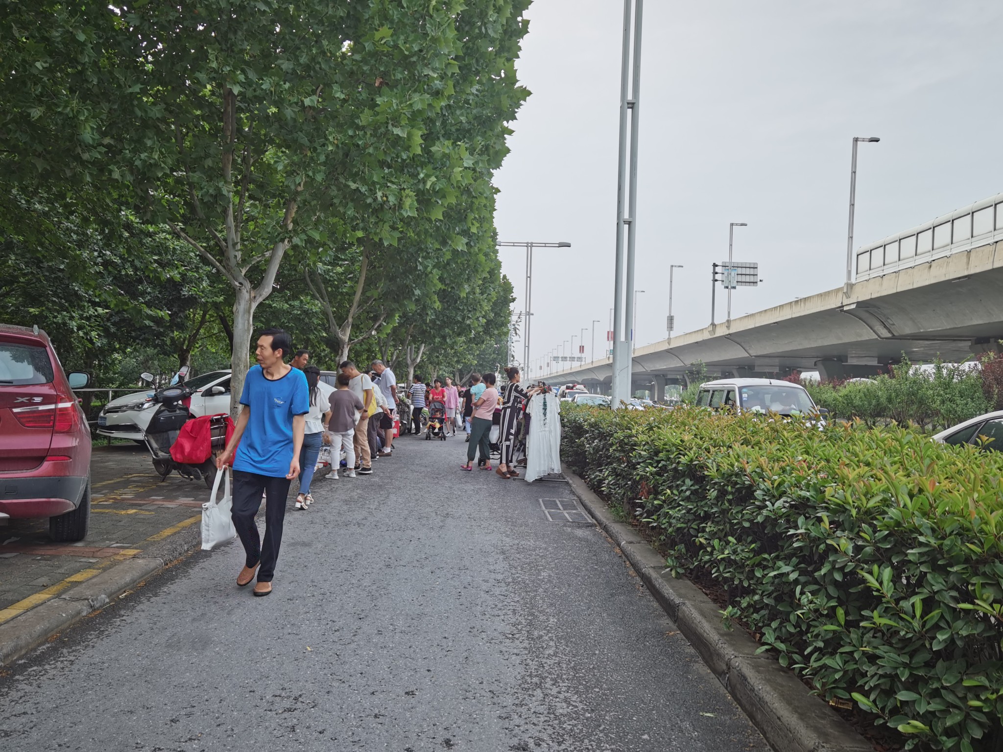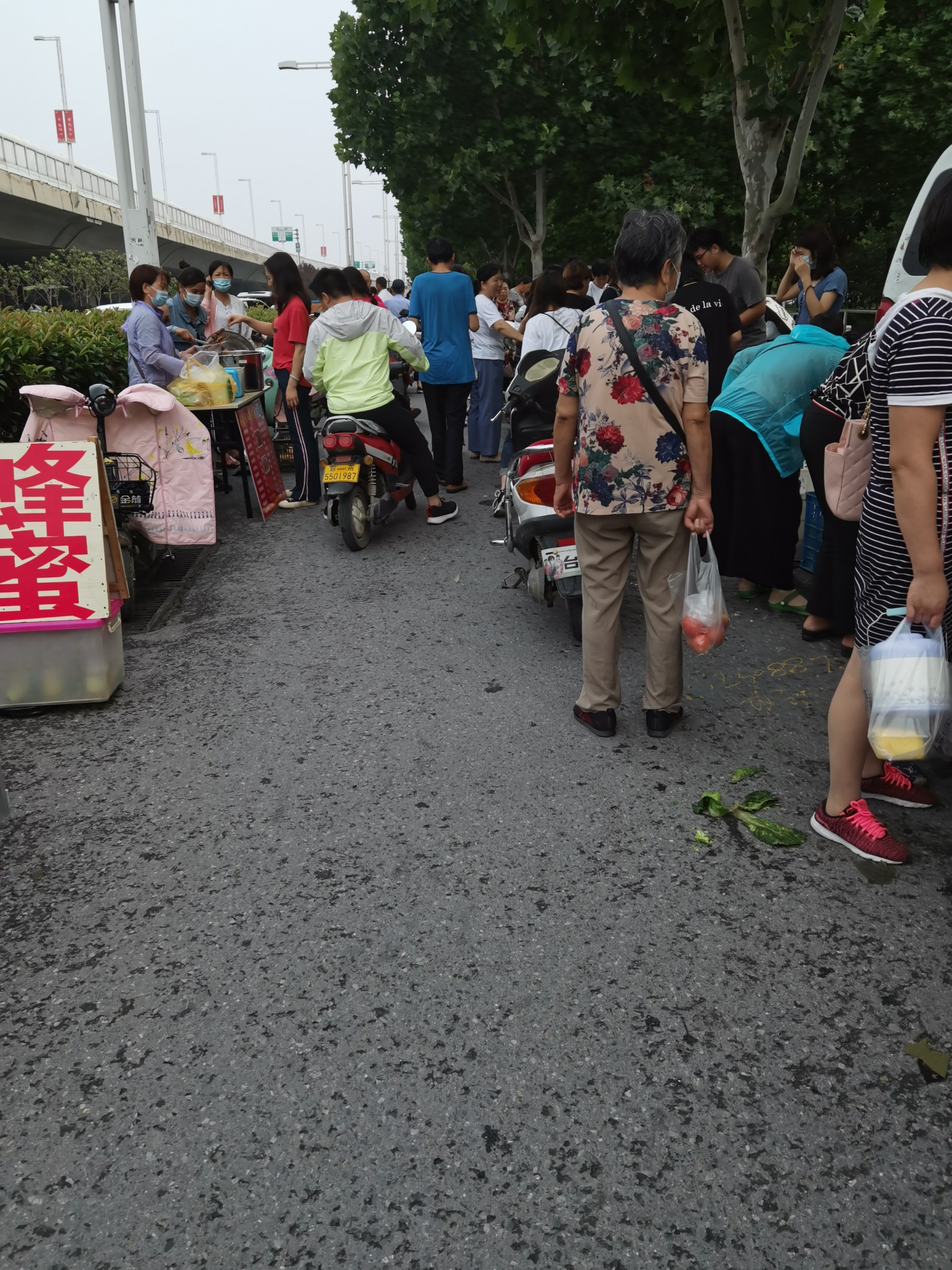 郑州21世纪社区东门两侧成夜市非机动车道被占压,高峰时段道路堵成一锅粥