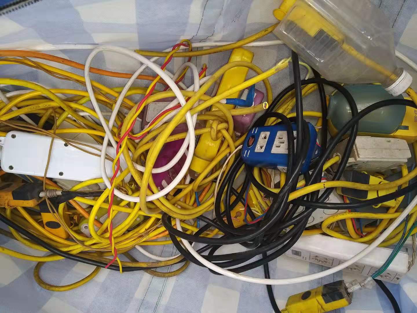 经过工作人员两个多小时努力,共清理插座80多个,剪除电动充电线90余根,剪掉了隐患。