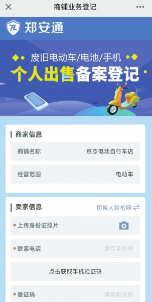 上传身份证信息、拍摄二手物品照片、填写联系电话……11月14日,郑州市管城区居民张先生在“以旧换新”购买新电动车时,被商家要求扫二维码并登记这些信息。