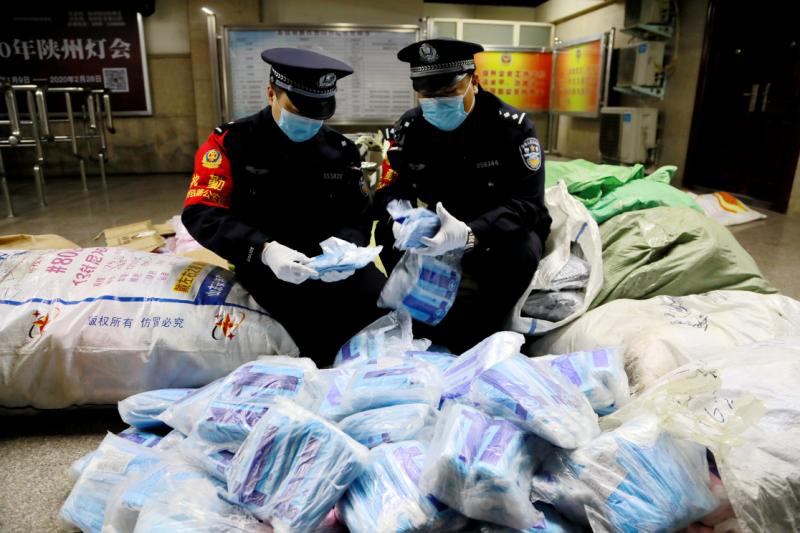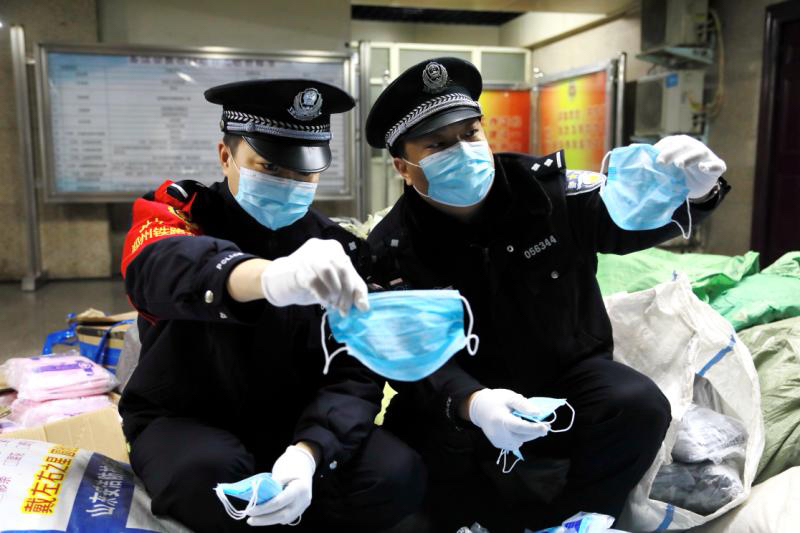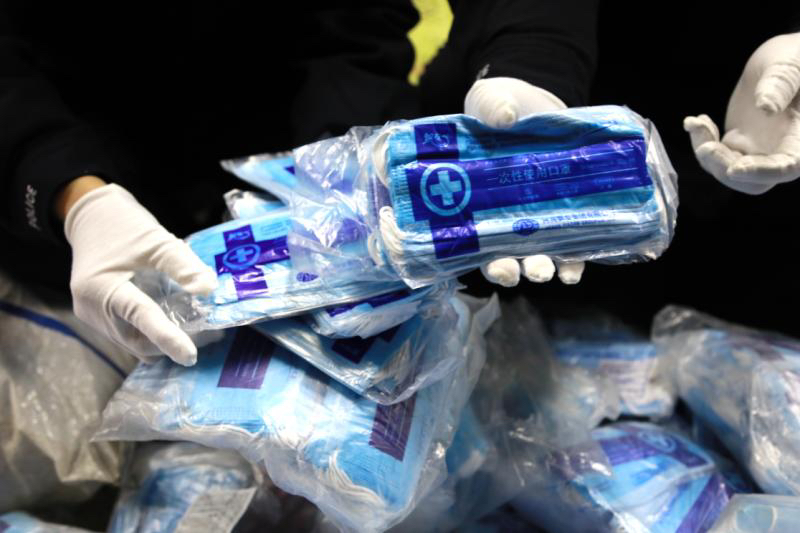 2月5日,郑州铁路公安处接热心群众电话举报称,其在郑州火车站中铁快运托运部办理托运业务时,发现托运部内有大袋包装的飘安牌一次性医用口罩,根据自身掌握的专业知识,他判断这批口罩为假冒伪劣产品。