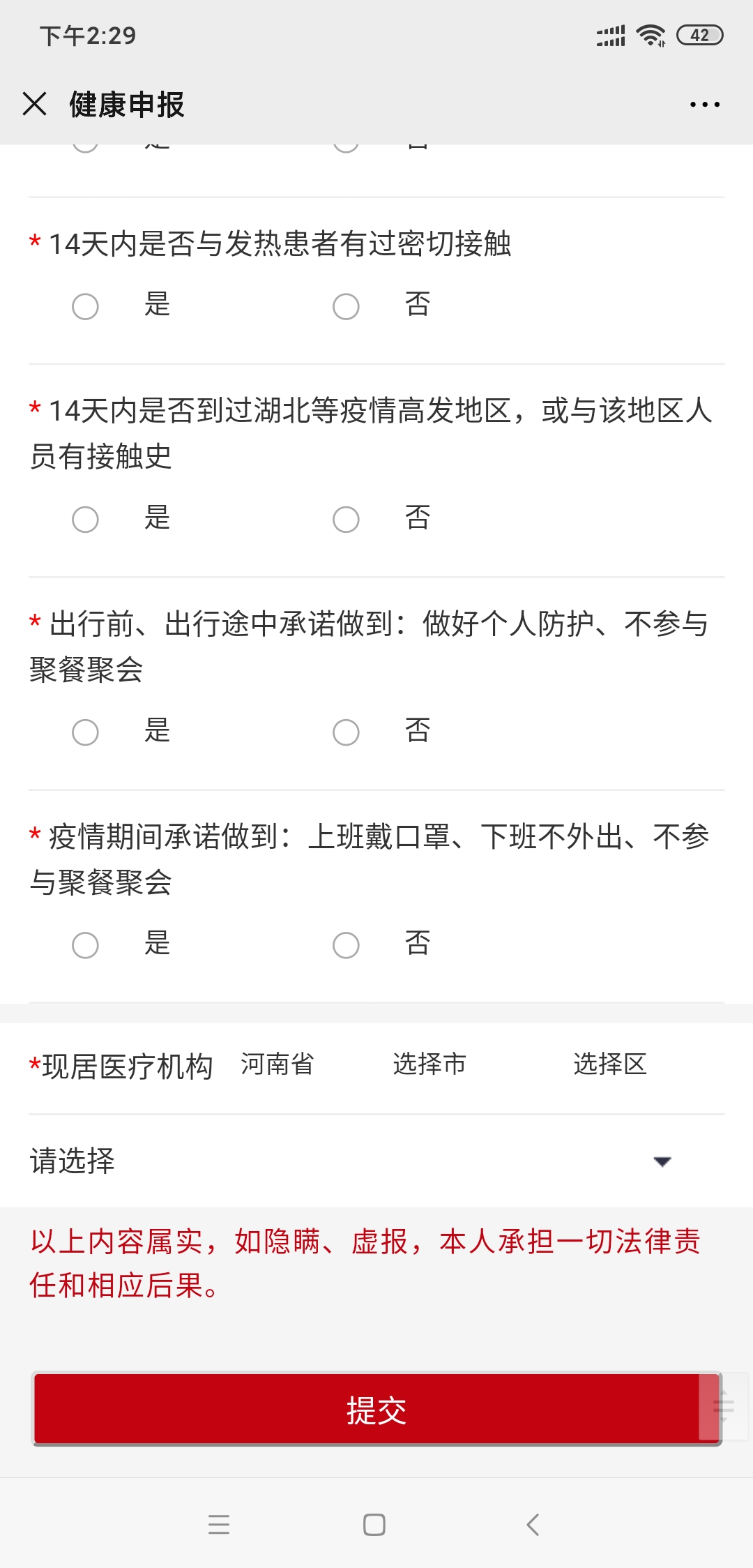最终,他在手机上反复摆弄了将近5个小时才显示提交成功。接下来,他抓紧前往当地的医疗机构进行体检,一番折腾后,健康证明总算是拿到手了。他心想,这下回郑州后可以正常进出小区了,但实际情况让他有点蒙。