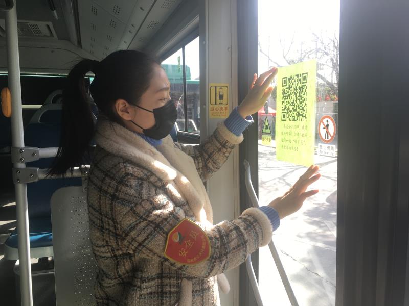孔海兰说:“疫情期间,大家都减少了外出,看到同事们对这些花都非常喜欢,我就想着让坐车的乘客也能感受一下春天的气息,我便把这些照片制成音乐相册,把音乐相册生成二维码粘贴在车厢内,乘客在乘车时可以扫码云赏花!”