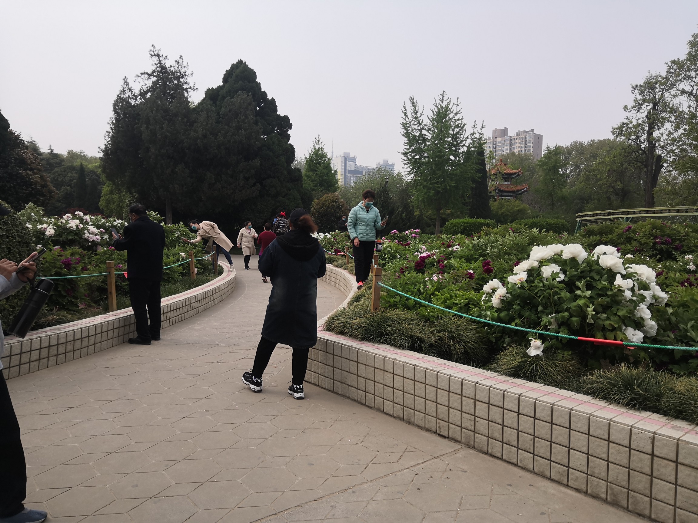 4月9日,郑州略有降温,天气寒冷,时而还伴有大风。但郑州人民公园紧挨西门的数个牡丹园里,还是来了很多市民赏花。