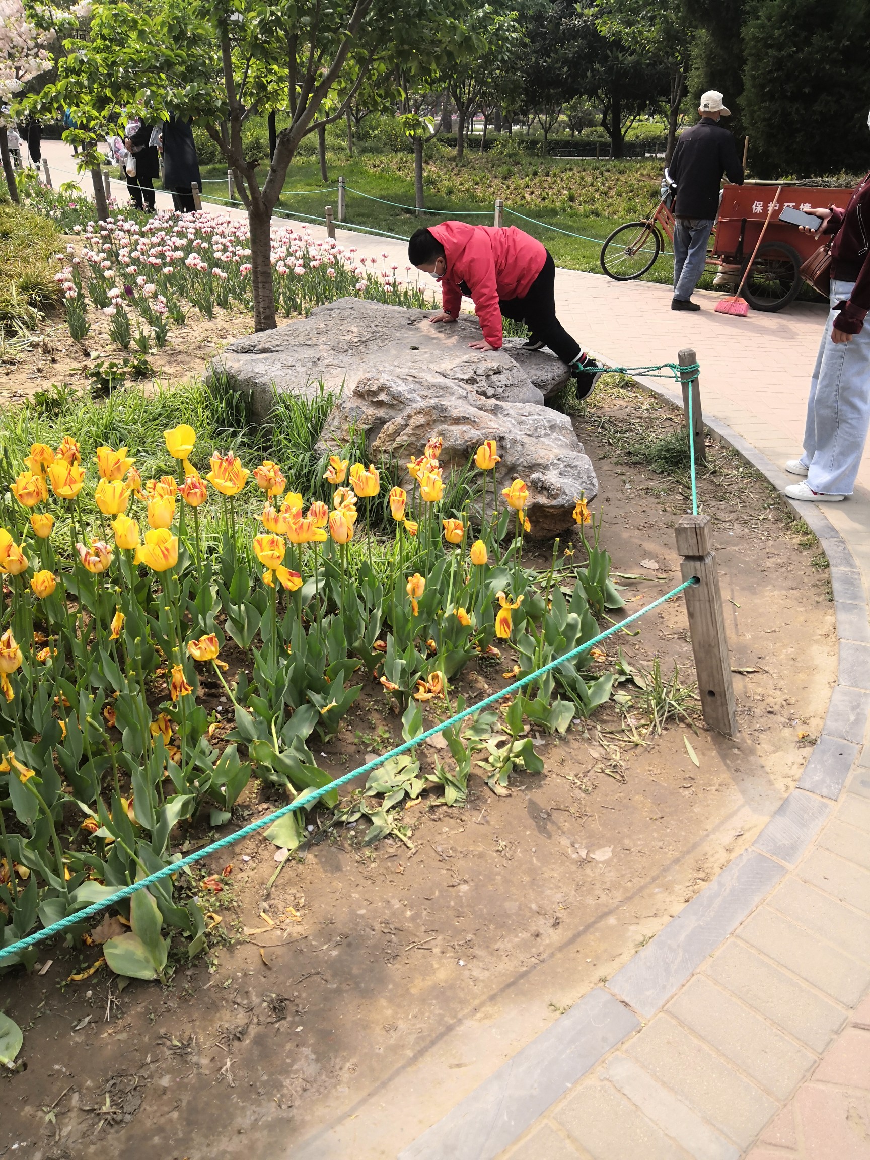 而就在记者现场采访的过程中,就看到有孩子不自觉,直接在牡丹园里准备掐花却无大人制止。这一幕被游客看到后及时制止。而有的游客,直接踏进禁止区域拍照,全然不顾脚下踩着的花。拍照过后,有花折损。