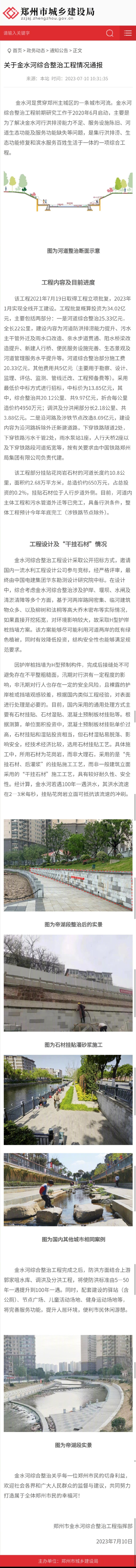 金水河是贯穿郑州主城区的一条城市河流。金水河综合整治工程前期研究工作于2020年6月启动,主要是为了解决金水河行洪排涝能力不足、服务设施陈旧、河道生态功能及服务功能缺失等问题,是集行洪排涝、生态功能修复和滨水服务百姓生活于一体的一项综合工程。