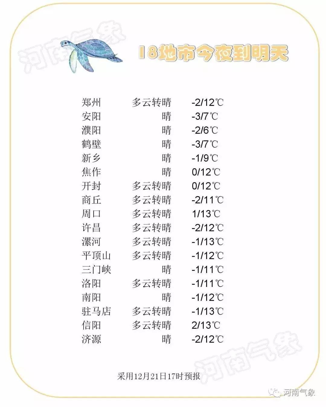 今天白天,全省晴天间多云。北部、中东部有雾。北部偏南风转偏北风,其它地区偏南风,全省风力2到3级。最低温度:北部、西部零下3到零下1℃,其它地区零度左右。最高温度:北部8到10℃,其它地区11到13℃。今晚-24日
