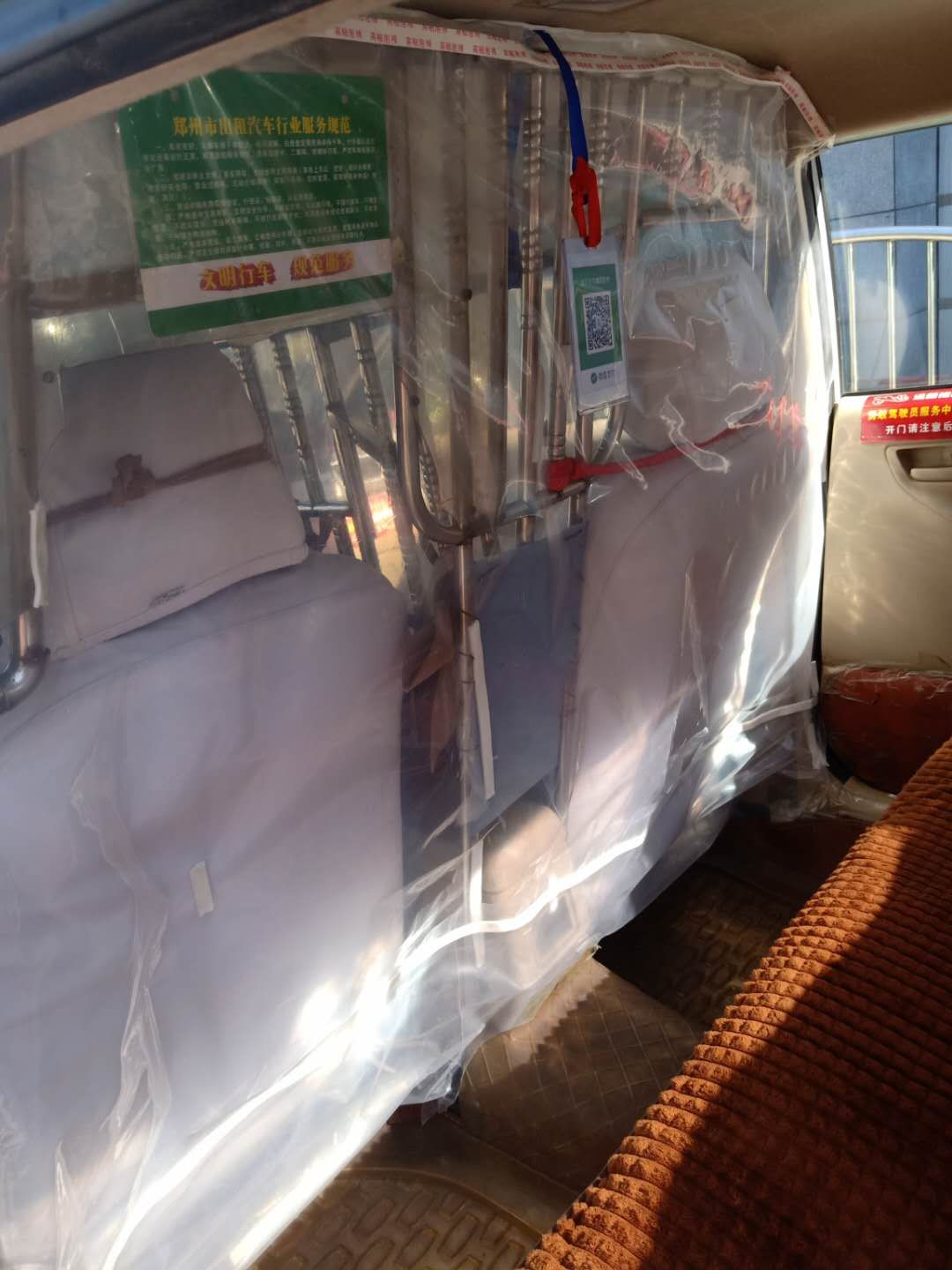 据悉,为了保障出租车正常运营,保护出租车司机和乘客安全,郑州市出租汽车行业协会会长吴先玉、副秘书长朱文亚,以及优秀出租车司机代表阴松强,依靠巡游出租车内的防护网,摸索出用透明塑料膜和拉链胶带制成的出租车“安全舱”。这种“安全舱”不仅能将车内前后排彻底隔离,还不影响视线、谈话和扫码,每个成本十多元,大大提高了司机和乘客的安全。