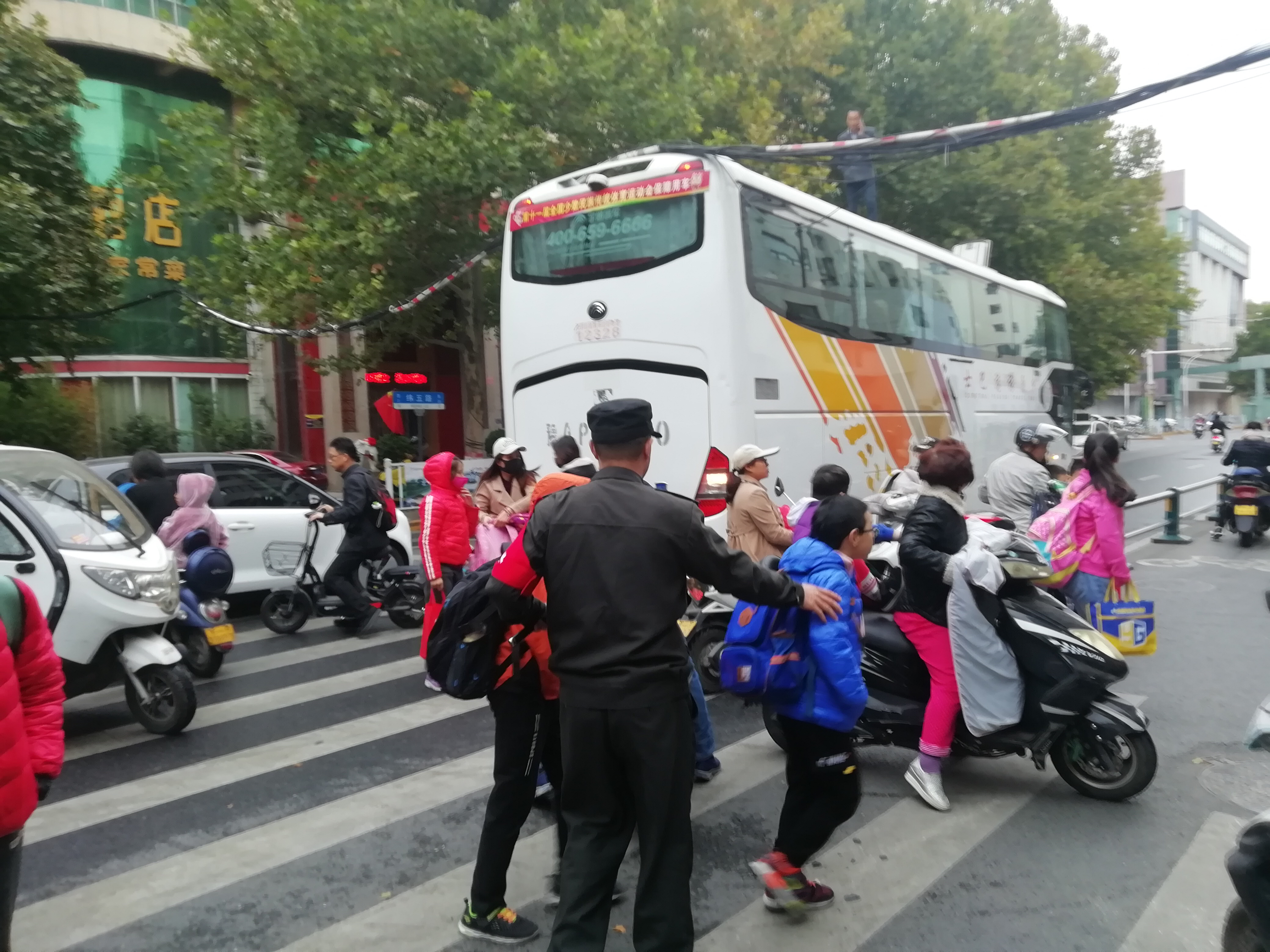 惊险一幕!郑州多名小学生正过路口去学校,一辆大巴车把空中线缆挂落…