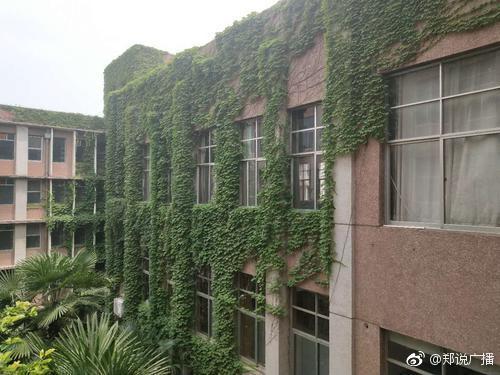 河南一高校图书馆外长满爬墙虎 室内比室外至少低3-4℃