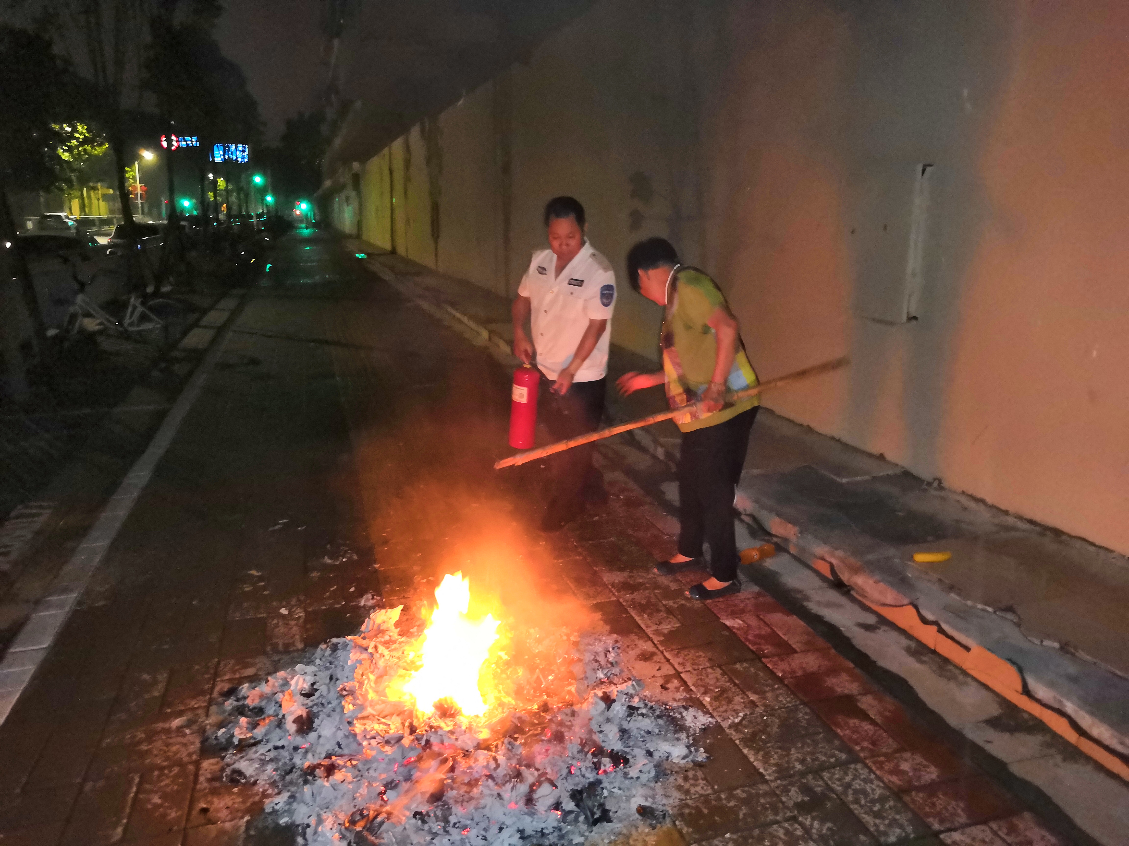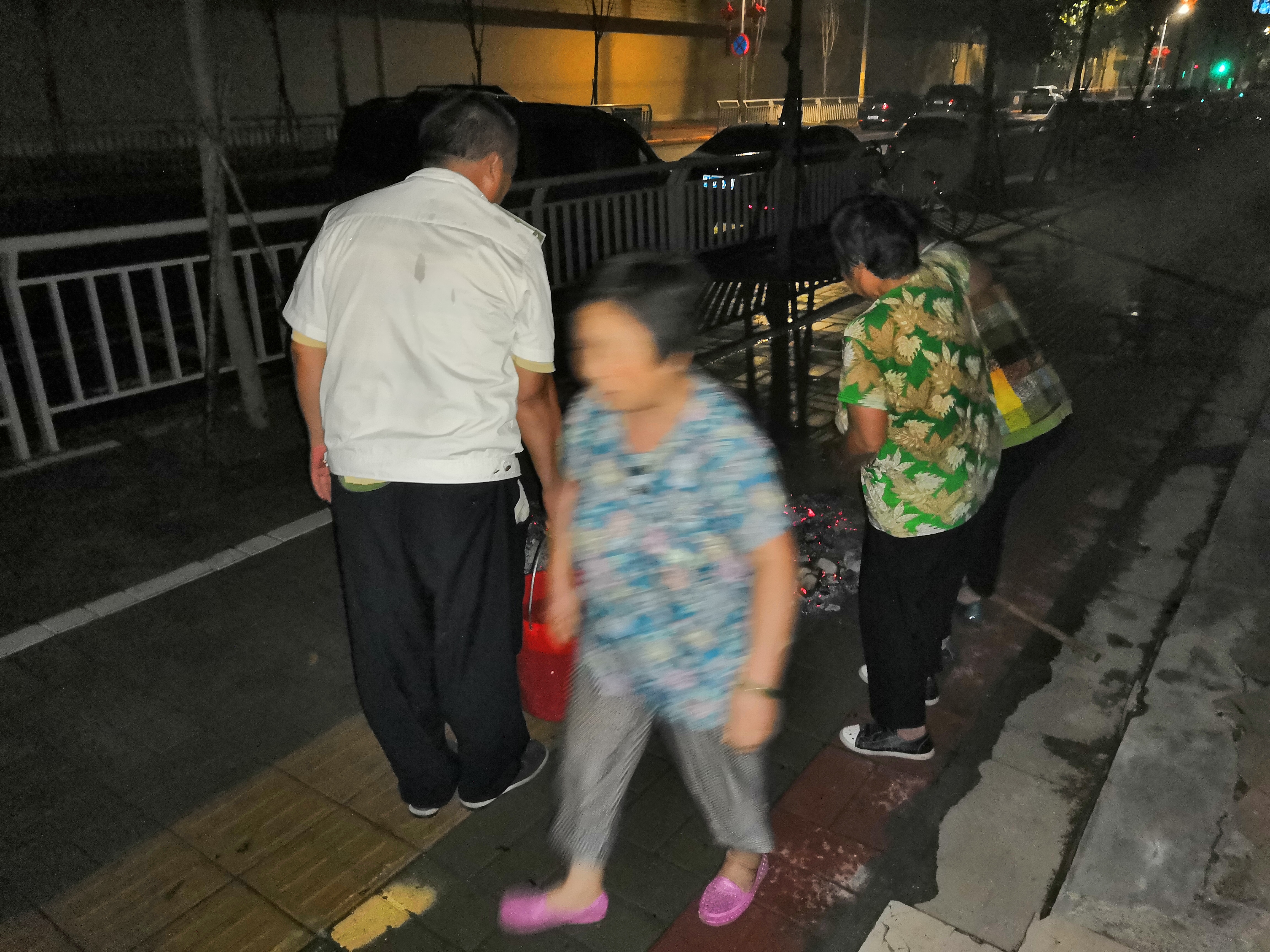 “你们半夜在这里烧纸多危险啊,旁边就是居民楼,万一引发火灾,三更半夜大家都在睡梦中,后果不堪设想。”队员马保民当即阻止三位大妈烧纸钱。