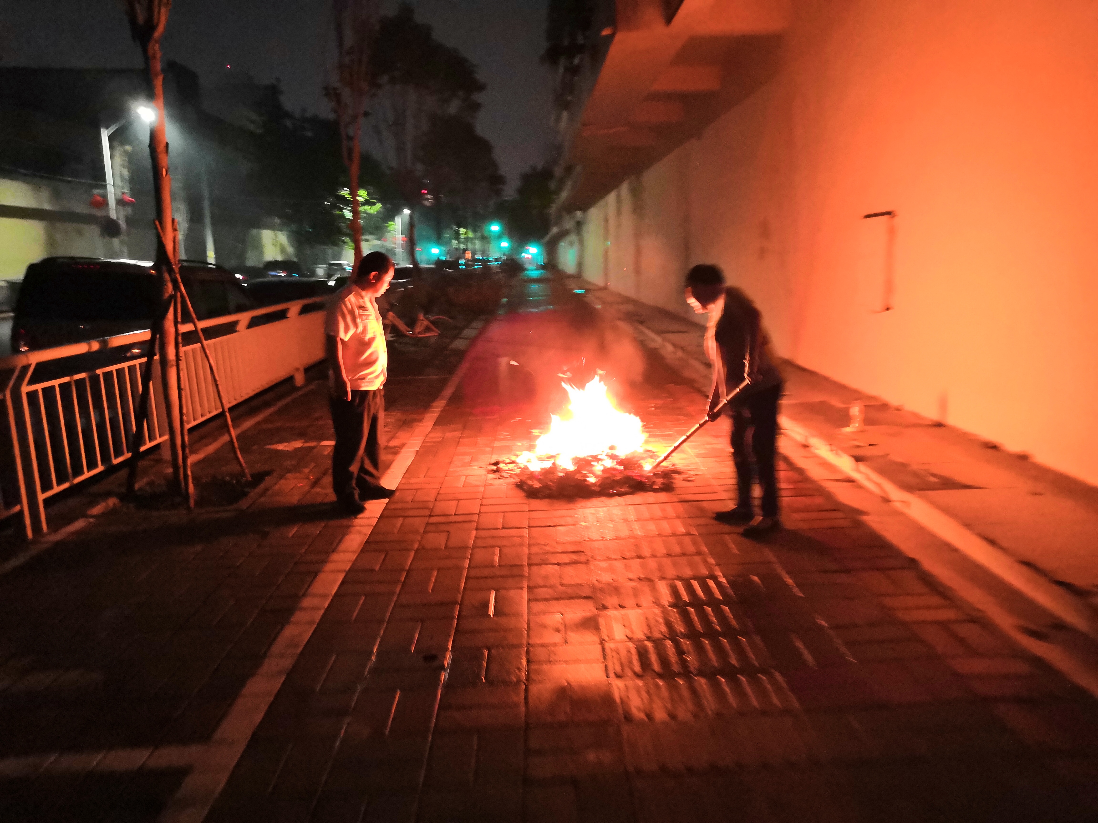 “三更半夜在路上烧火,是祭祀故人吗?”队员跑到跟前才看清,是三位七十多岁大妈在烧纸钱,由于纸太多,火焰窜起很高,远远就能看到,在黑夜里显得有些恐怖。