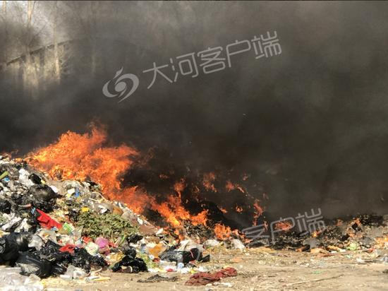3月30日下午,位于郑州市经开区京航办事处大孙庄内的一个生活垃圾场突发大火,滚滚浓烟四处弥漫,远在二公里以外都能闻到刺鼻的气味。