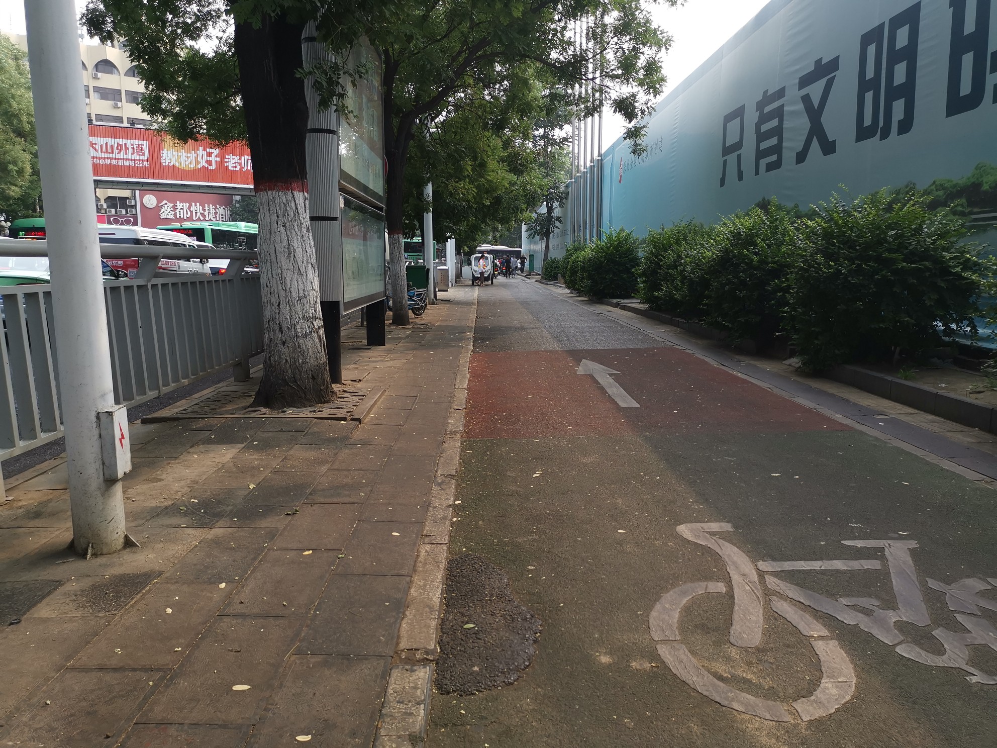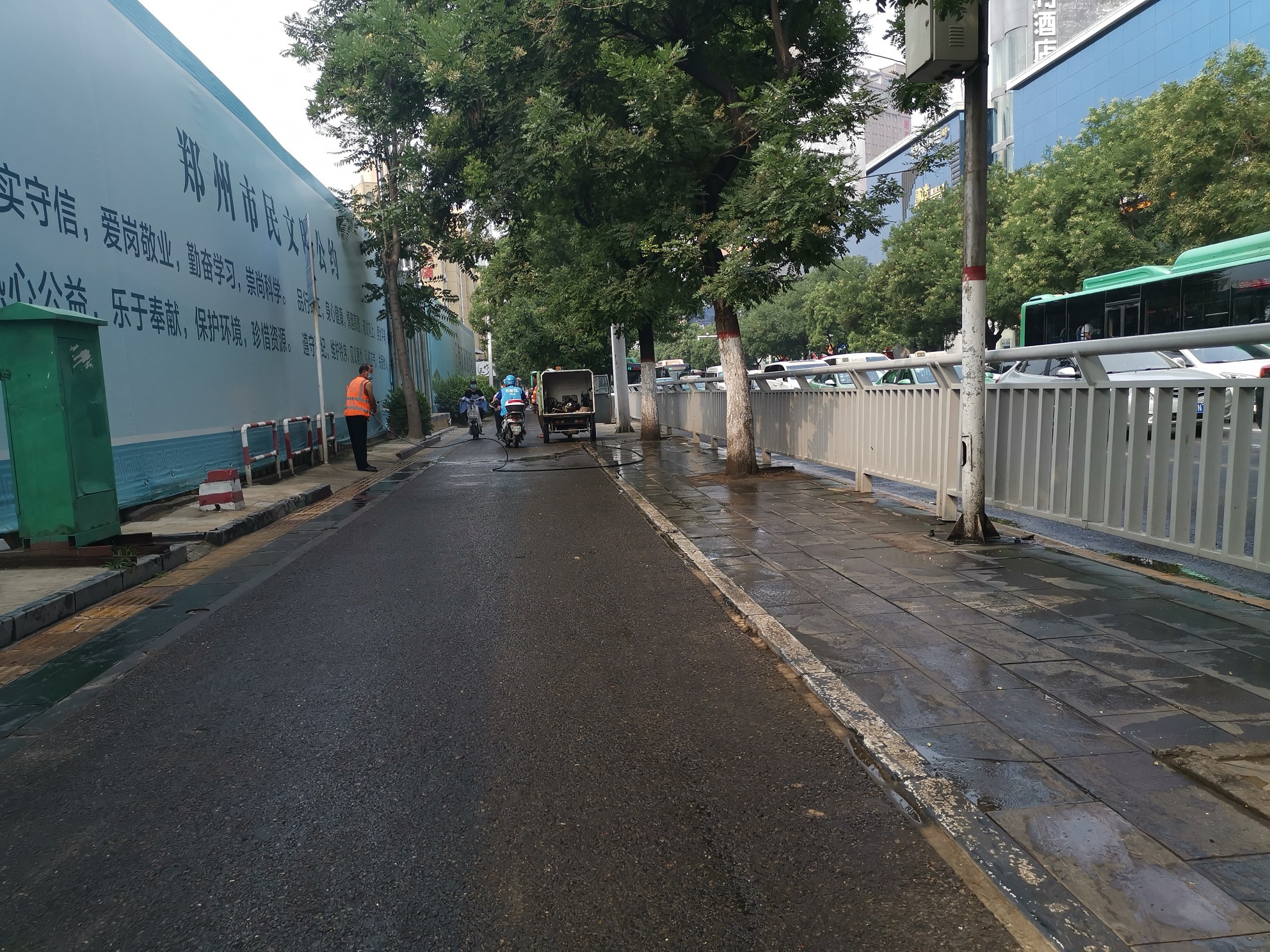 7月8日上午9时许,根据李女士的指引,记者赶到了人民路与北下街交叉口东南角旁的非机动车道上,该段非机动车道往东是人民路与商城路交叉口,长度不到百米。此时,有不少骑电动车的市民从此处经过, 一辆环卫冲洗车和两名环卫工人正在冲洗路面。站在该段非机动车道上,记者能闻到一股淡淡的酸臭味儿。