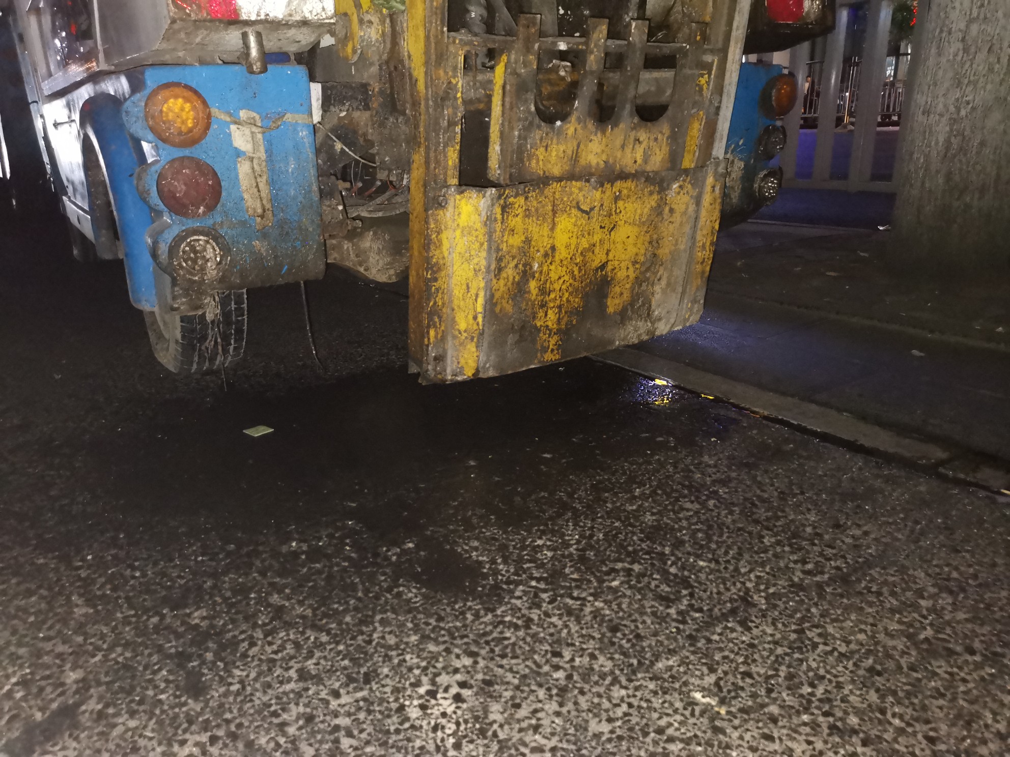 通过李女士手机中的照片,记者看到,在漆黑的夜间,此处非机动车道上确实停放有多辆装满垃圾的垃圾车,其车身上分别印有“厨余垃圾 ”和“其他垃圾”等字样,且部分垃圾车下还有一摊从垃圾车上滴落的液体 。