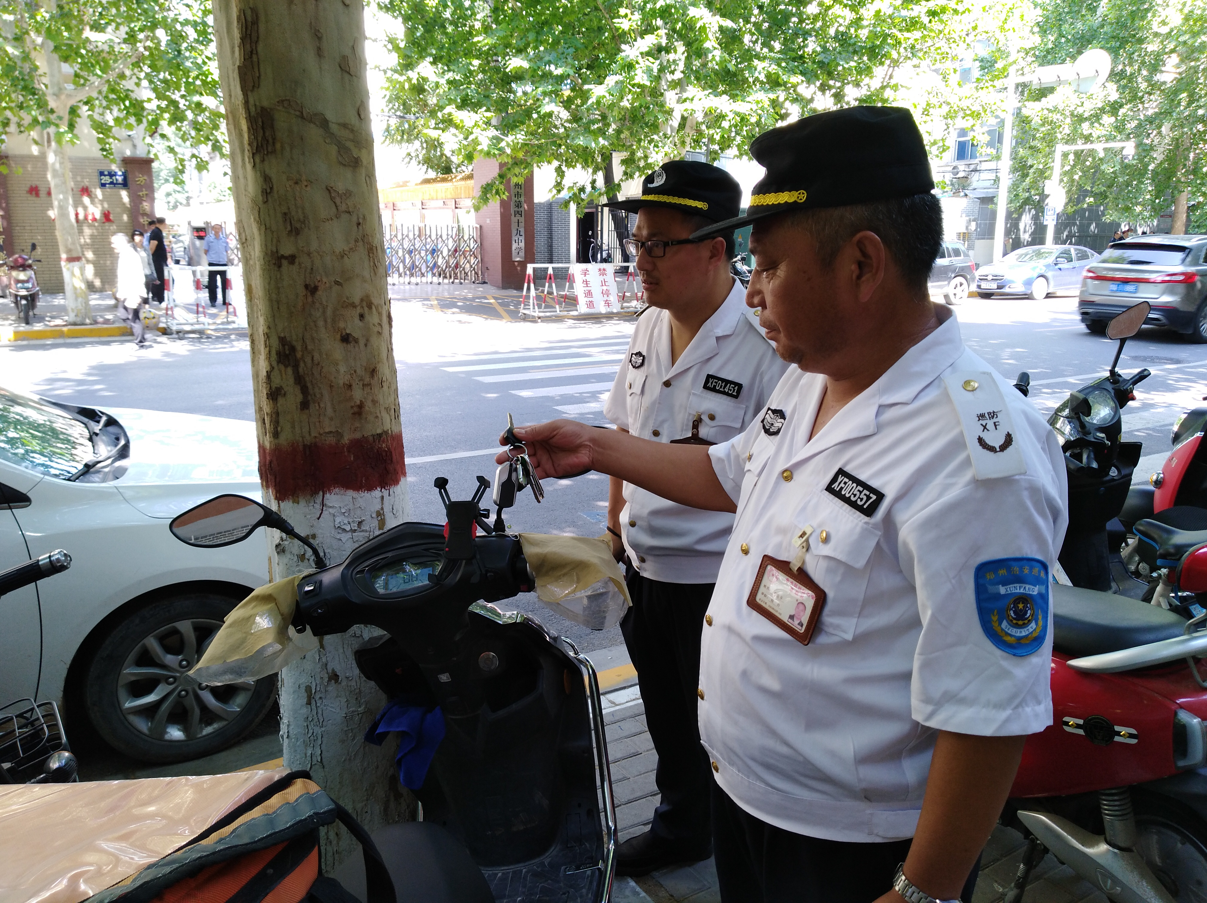 7月1日下午2时许,巡防队员买宝平、姚建庭、陶恩柱三人,巡逻到郑州四十九中门口时,看到一辆黑色绿佳跑外卖电动车,带遥控器的车钥匙挂在车把上,该电动车仪表盘还亮着,车子也没锁。