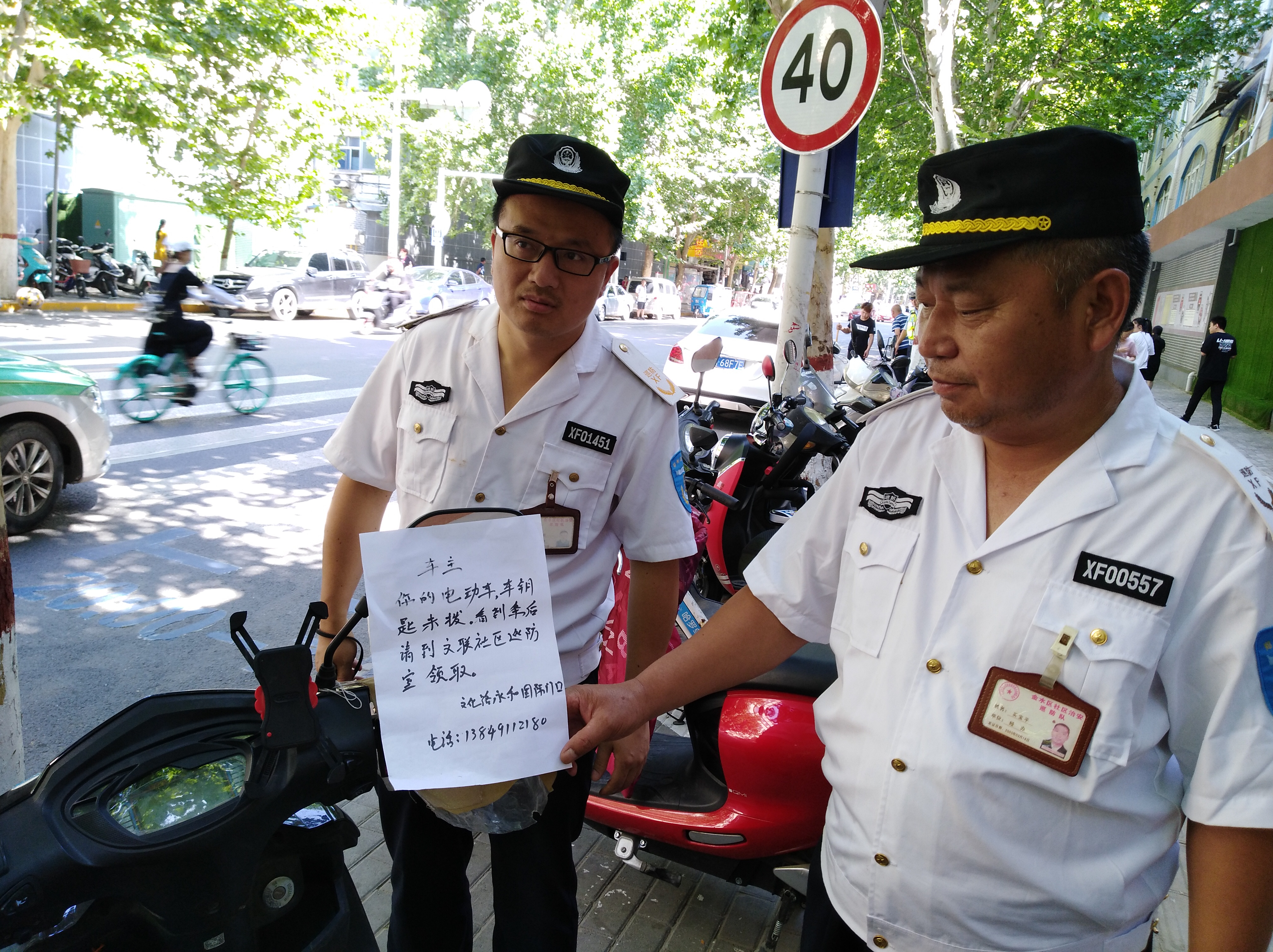 “这电动车可以随时被人骑走,难道外卖小哥急着送外卖忘锁车了?”巡防队员买保平告诉记者,他们在现场等了近半个小时,也没见车主回来,为了不影响正常巡逻,避免电动车丢失,他和队员先将电动车锁好,然后写了一张领取车钥匙的纸条放在车上,提醒车主见到纸条后到文化路文联社区巡防室领车钥匙。