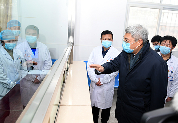 2月7日下午,省长尹弘来到信阳市检查疫情防控工作。信阳是目前我省疫情最重的地区,确诊患者人数居省内各地市首位。在信阳市疾控中心和平桥区疑似病例集中收治点,尹弘一行走进即将启用的留观隔离病房,详细了解集中隔离收治准备、医护人员构成、医用废弃物处理,尤其是医疗物资和药品储备及来源等情况。看望慰问一线医护人员时,尹弘叮嘱大家:“千万不能让医护人员在救治过程中被感染。信阳守住了,河南打赢这场疫情防控阻击战就大有希望,望大家守牢中原‘南大门’!”