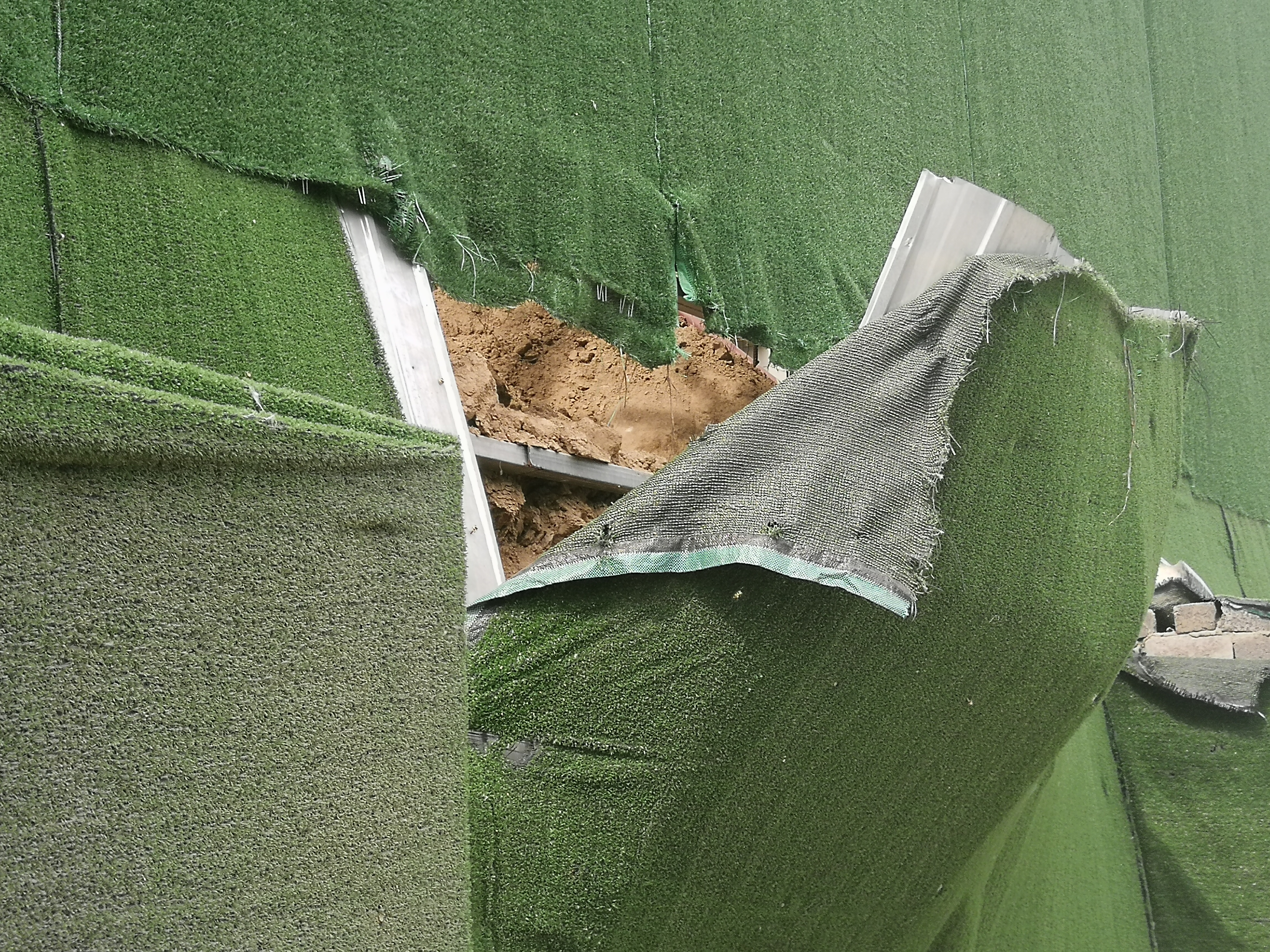 2月28日上午,记者到现场釆访时,发现这家工地是郑州高新区石佛安置房的建设施工项目。工地北侧的施工围挡紧临翠竹街人行道,有数百米长。中间围挡处裂开了一个长约2米、宽约1米的大口子,有大量的黄土从豁口处裸露出来,随时可能洒落。从豁口处向里看,靠近施工围挡地的方堆积着大量的泥土,使只有一层薄铁皮的围挡不堪重荷被撑破。市民张先生说,由于围挡挨着人行道,他每次经过这里时,都会绕着走,担心围挡内如山的泥土坍塌出来伤到自己 。