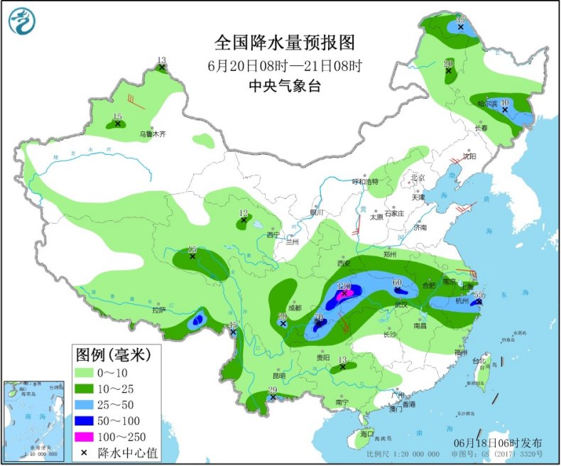 20日白天,黄河以南阴天,大部分地区有阵雨、雷阵雨,西部、西南部部分地区有中雨,局部大雨;其它地区多云。