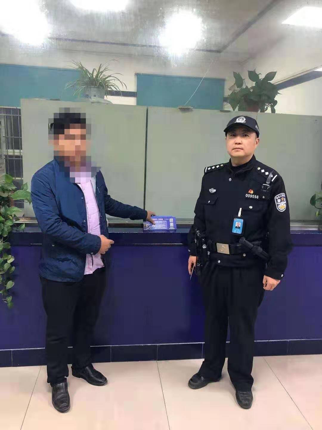 昨天晚上8时许,郑州市公安局二里岗分局交管巡防大队中队长程庆涛带领辅警在航海东路与银鹰路口附近巡逻时,发现一男子正在向过往行人散发色情小广告,立即上前将其当场抓获。