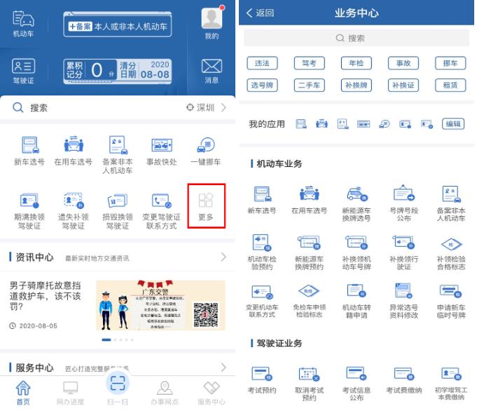 电子通行证、违法查询与缴费、机动车驾驶证业务缴费等高频业务手机办理。