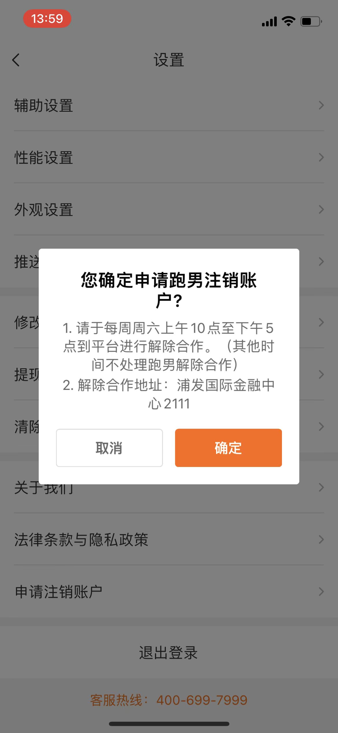 但如果是签约的“跑男”,签订了相关协议,账户有余额,需要自行到线下的签约地点办理解除合作申请。