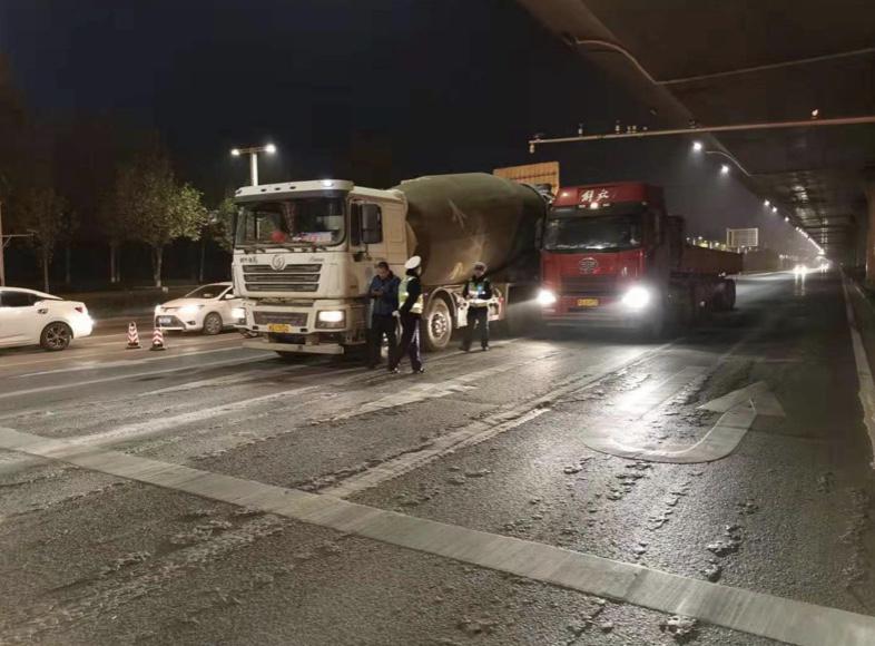自12月10日晚至12月11日早,交警五大队在海洲大队长的带领下,共出动警力60余人,在中州大道、花园路、农业路、北三环京广快速路等多个路口设卡盘查, 截止到次日7时,共查处渣土车96辆,水泥罐车21辆,其中2名渣土车、罐车司机闯入严管示范路被拘留;满分暂扣驾驶证1起,查处酒后驾驶交通违法行为3起;非机动车处罚168起,其他交通违法行为122起。行动效果显著,在社会上起到了一定的震慑效果。