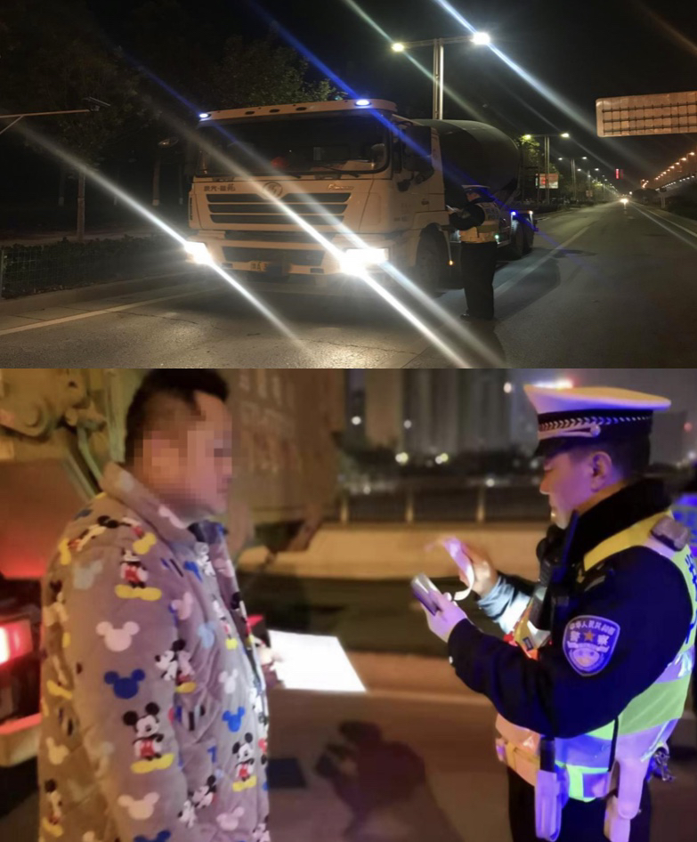 凌晨5时50分,另一组民警马现国在中州大道巡逻中发现一辆豫A265**重型自卸货车在路上行驶,随即将车拦下对司机张某磊和车辆进行检查,该车车辆手续齐全,但未按规定通行时间行驶。询问时,司机张某磊不断为自己的违法行为找说辞,希望能够枉开一面。最终民警向其讲解了相关通行规定,并按照《中华人民共和国道路交通安全法》规定,罚款100元、记3分。