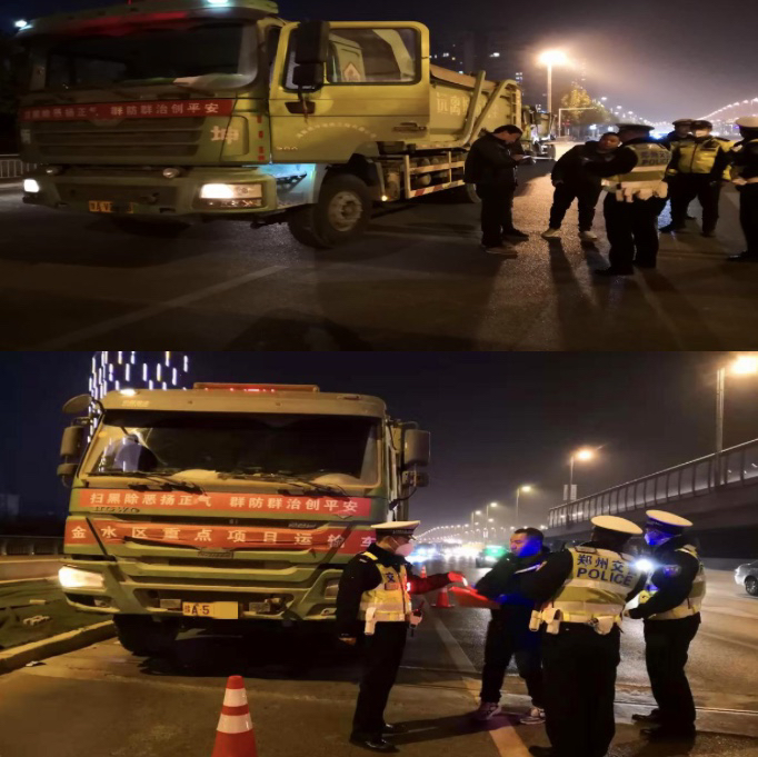 同时,上述两位渣土车、罐车司机张某延和张某磊,还因违反近期郑州市公安局、郑州市城市管理局、郑州市交通运输局联合下发的《关于进一步加强严管示范路秩序管理通告》中全天24小时禁止重型自卸货车(渣土车)和水泥罐车驶入严管示范路的相关规定,将面临15日以下行政拘留,目前,两名司机已移交相关派出所进行下一步处理。