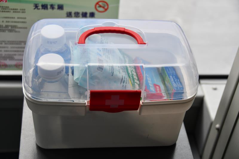 在郑州176路的一辆公交车上,车长座位后面的一个小柜子里放着一个小药箱。