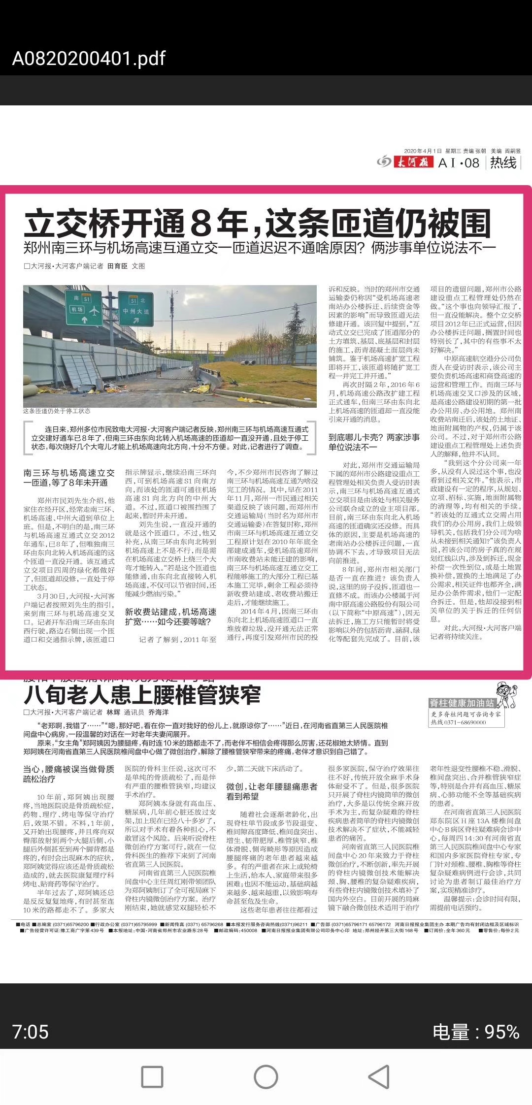 4月1日,大河报·大河客户端记者对此事进行了报道。当时,涉事的郑州市交通运输局下属的二级机构郑州市公路建设重点工程管理处和中原高速航空港分公司负责人说法各一,并未给出如何解决的方案和途径。半个月过去了,该匝道有啥进展?
