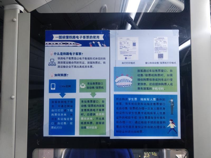 此外,刘车长还制作了“电子客票的使用指南”,并张贴在了春运车票预售时间表的旁边。