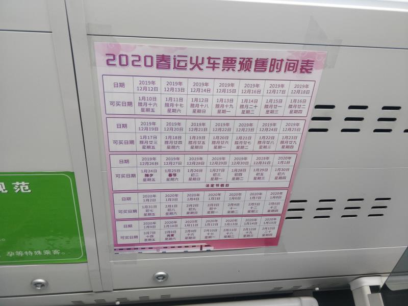 为方便市民和外来务工朋友在火车票预售期间顺利购买到自己回家的车票,郑州公交26路车长刘洋趁自己休息时间,专程到广告印刷店,打印了2020年春运车票预售时间表并张贴在了自己车厢内最醒目的位置。