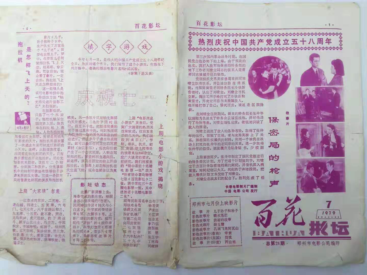 在出版《百花影坛》报纸的同时,1980年元月,郑州市电影公司又试办了《百花影坛》杂志,刊登最新的电影介绍和影评以及电影插曲,里面还有拍摄花絮、游艺宫、影坛史话等栏目,深受广大郑州影迷的欢迎。