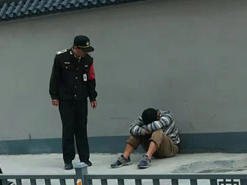 10月21日早上8点40分,郑州市二七区建中街巡防队员王怀民和队友在庆丰社区巡逻时,见到马路边坐着一个中年男子,只见他时而将头埋到身子里,时而抬起头来唉声叹气,满面愁容地望着来往行人,看似很无助的样子。