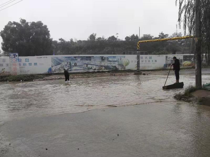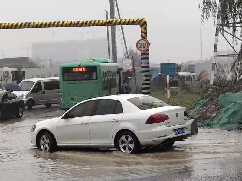 近日来气温骤降、阴雨连绵,经过三天的雨水,忆江南场区门口因地势低洼,再加上从四周山坡上冲刷下来的泥土杂草,下水道变得不再通畅,下午积水瞬间暴涨。而忆江南一号线和723支线的首站刚好就在积水处。