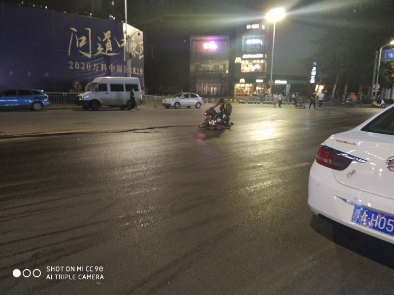 至于事发原因,是不知什么车辆洒了一地油,铺满了该路口向东约100多米的主干道,明晃晃的,使人觉得像洒水车刚洒过的水一样。