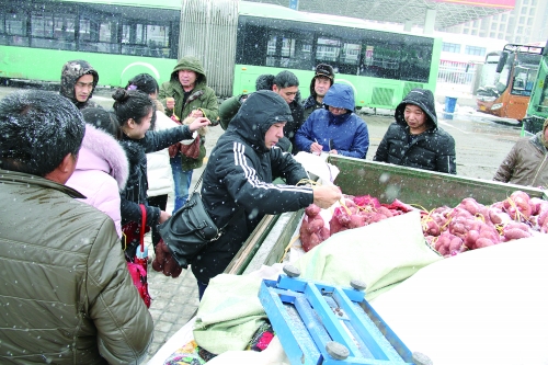老人郑州卖红薯遇大雪 公交车长伸援手千斤红薯1小时被“抢空”
