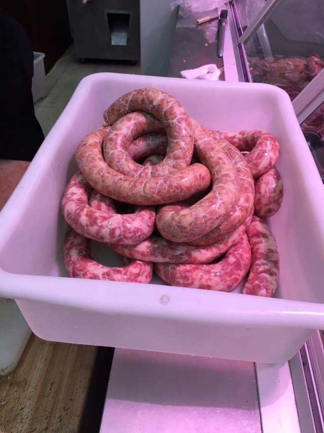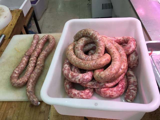 腊肠,是一种传统的美食,以肉类为原料,辅以佐料,灌入动物肠衣经发酵、干制而成。手工腊肠因为制作过程可见,受到顾客的喜爱。临近年关,腊肠的预定也是越发红火起来。