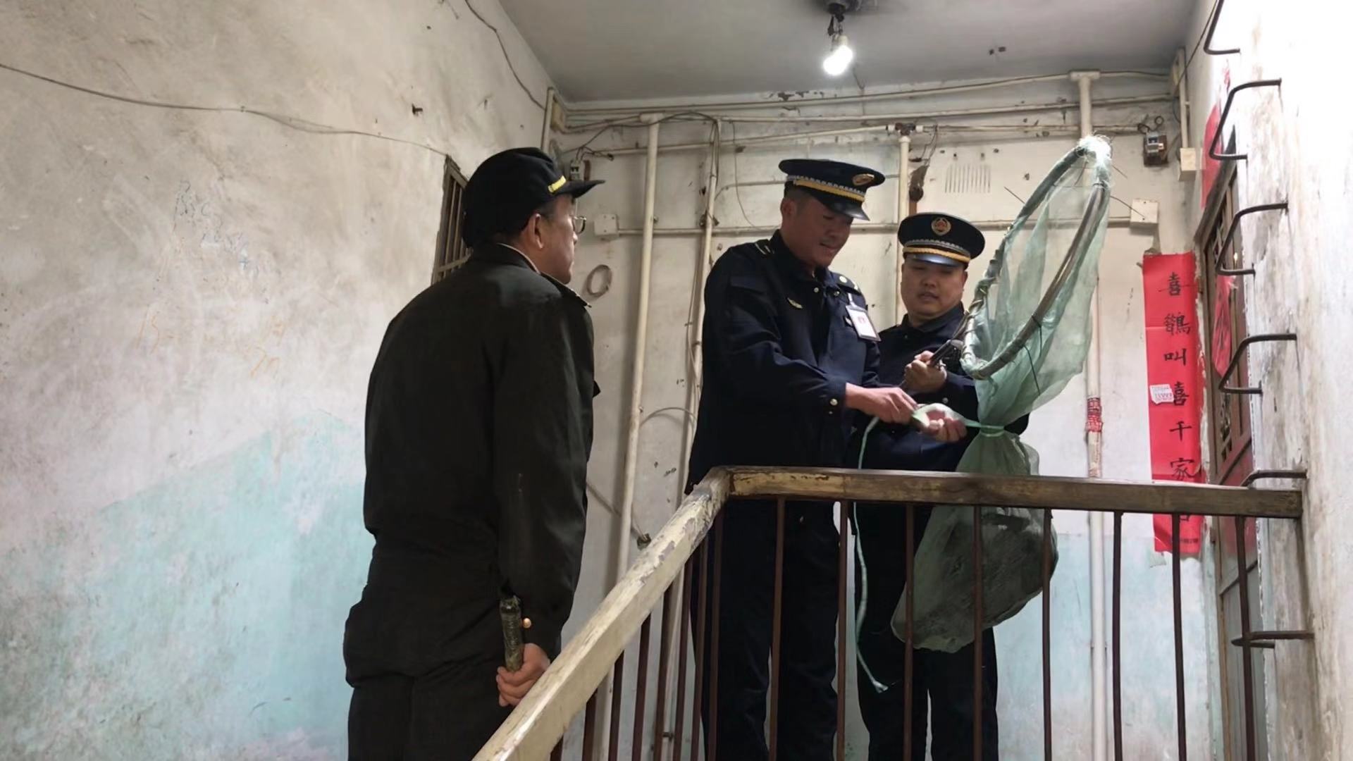 巡防队员通过此事提醒辖区居民,如在小区楼道里遇见类似流浪狗挡道扰民,一定要电话联系相关城管人员或报警后,求助专业人员使用专业工具处置,千万不要私自动手抓捕,以免发生狗急咬伤人的险情。