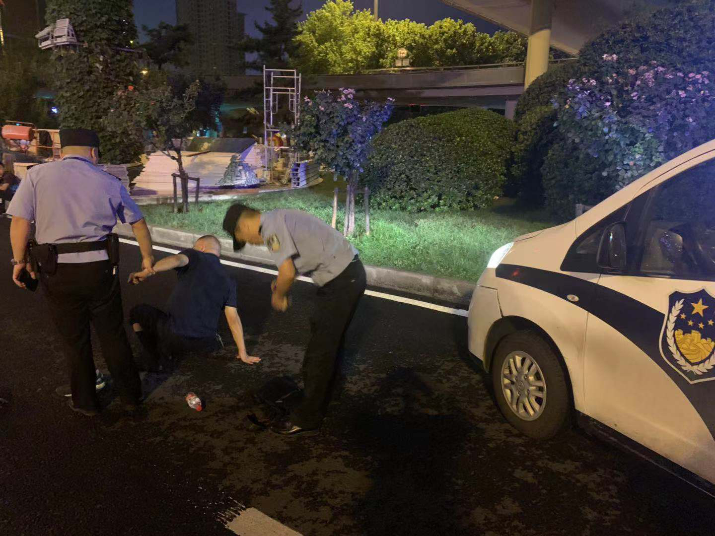 2019年8月1日晚23时50分,郑州市公安局特警支队武装巡逻一号民警刘国锋、贾晨阳在执勤岗位上接过路群众报警称:一男子醉酒后躺在紫荆山立交桥一层机动车快道上生死不明,十分危险。警情就是命令,险情就是使命。车长刘国锋火速带领民警贾晨阳赶赴现场,发现一约四十多岁男子呈醉酒状态,仰卧于紫荆山立交桥一层由北向南方向机动车道上,鞋子等衣物,手机、背包等随身物品散落一地。