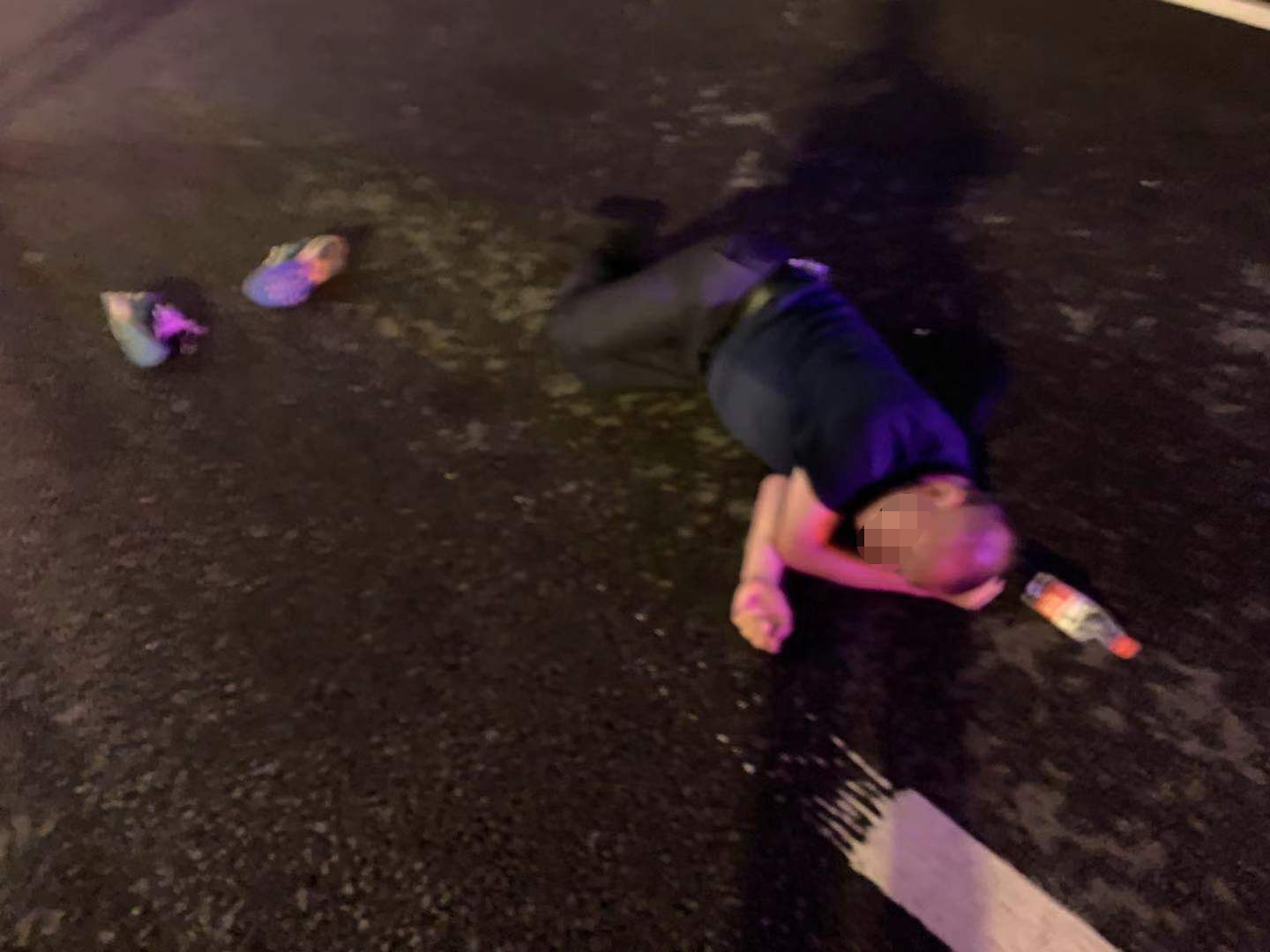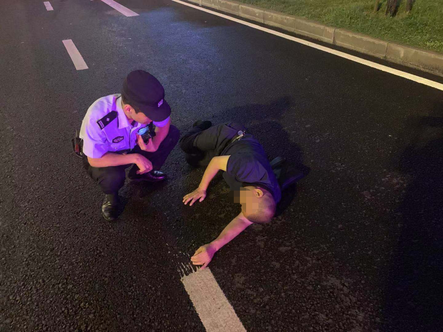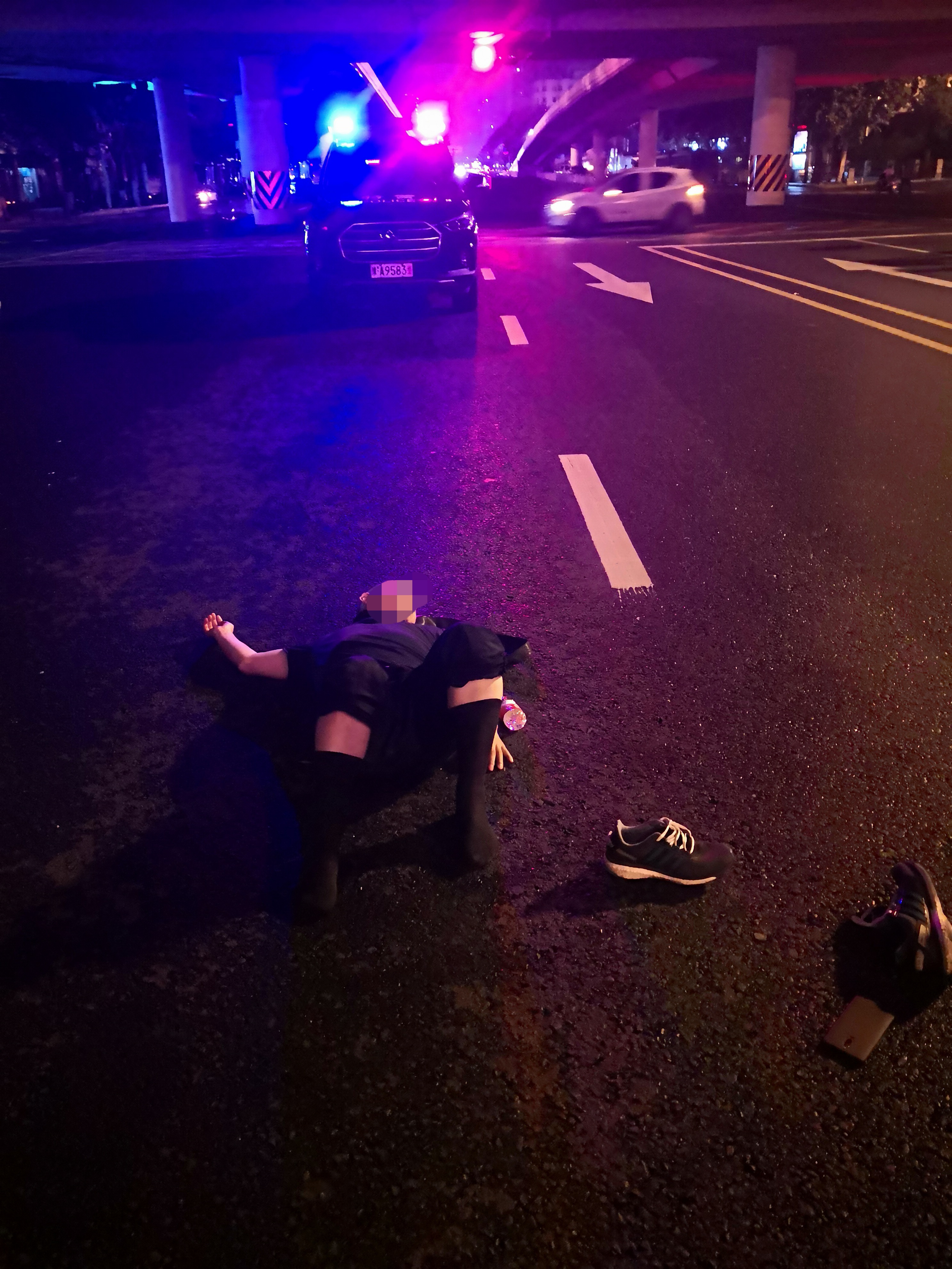 暴雨夜,郑州一男子躺在快车道上,手机、背包散落一地