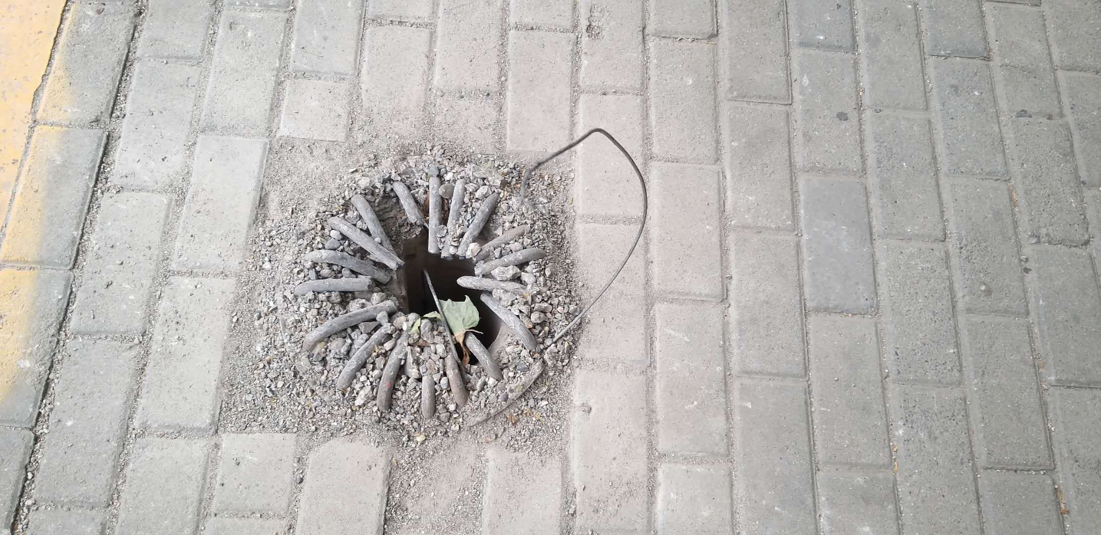“这些被拔掉的线杆下的钢筋成了‘马路杀手’,一旦被扎中,铁锈易感染破伤风,希望能赶紧处理。”