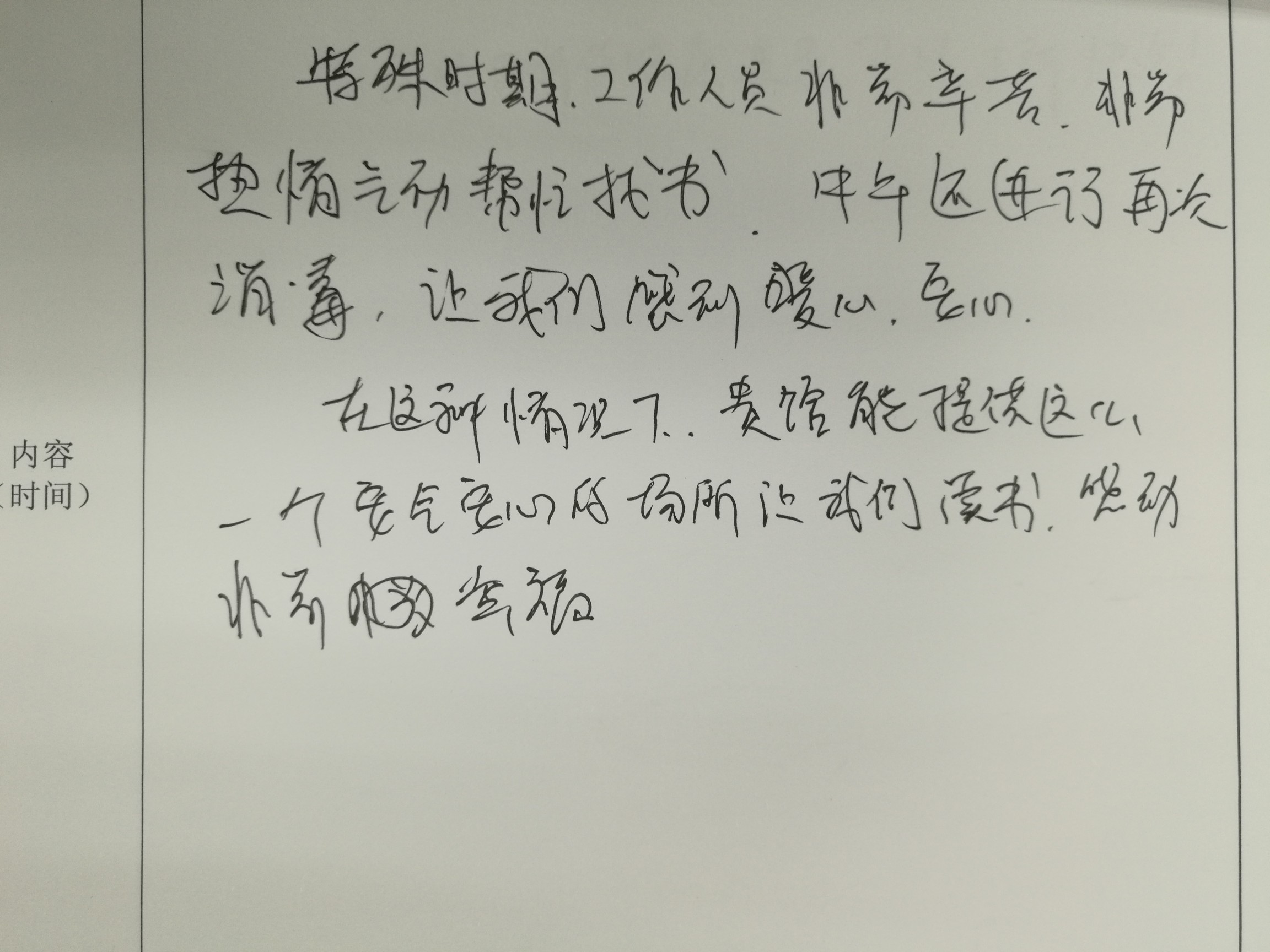 “特殊时期,贵馆能提供这么一个安心安全的场所让我们读书,感到非常幸福。”