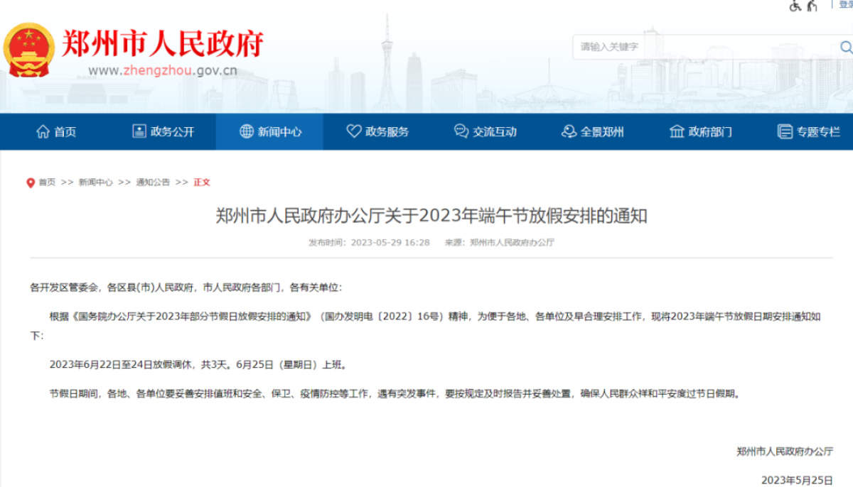根据《国务院办公厅关于2023年部分节假日放假安排的通知》(国办发明电〔2022〕16号)精神,为便于各地、各单位及早合理安排工作,现将2023年端午节放假日期安排通知如下: